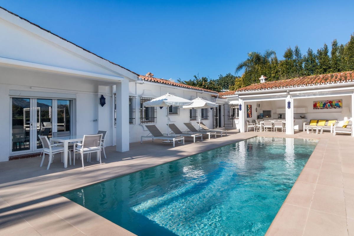 Nestled in the tranquil and prestigious area of Fuente del Espanto, Benahavis, this exquisite Andalusian-style detached villa offers a harmonious blend of rustic charm and modern luxury. Located just a few minutes’ drive from the bustling town centre of San Pedro de Alcantara, this property enjoys a serene setting with open views to the iconic La Concha mountain. Boasting east, west, and south orientations, the villa is bathed in sunlight throughout the day and offers unparalleled privacy in a quiet residential area.
