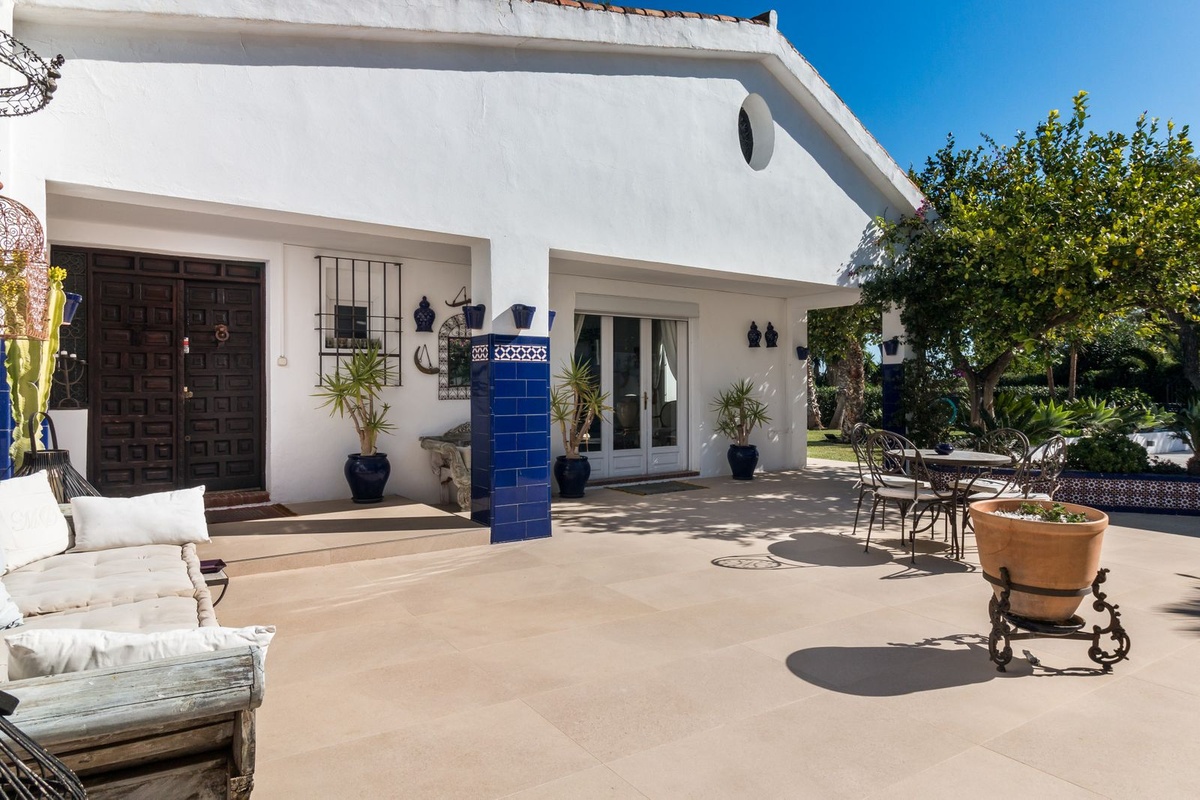 The villa, all laid out on a single level for ultimate convenience, spans a generous 300m² of built space, complemented by a 200m² terrace and set on a plot of 1,115m². The interiors feature classic Andalusian design elements, including terracotta floors and high ceilings that create a bright and spacious living environment. The heart of the home is a large, light-filled living room, perfect for relaxation or entertaining. The fully fitted kitchen is of a good size, catering to all culinary needs, while the dining room provides a warm and inviting space for family meals. Accommodation includes three bedrooms in the main house, two of which have en-suite bathrooms, plus a guest room with its own private entrance, which can also be accessed from within the house. Additionally, there is a guest toilet, ensuring ample facilities for residents and visitors alike.