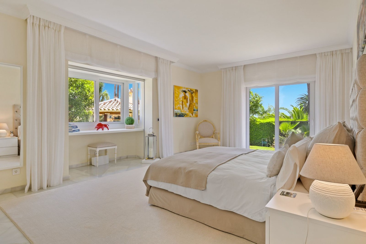 Gelegen in de gewilde woonwijk La Cerquilla. Op het zuiden met uitzicht op La Concha. Privé en rustig, vlakbij alle voorzieningen en de golfclubs van Las Brisas en Los Naranjos.