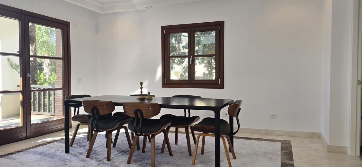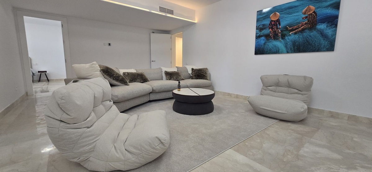 This beautifully renovated villa is located in the highly desirable gated community of La Capellania Hill Club, on the prestigious Golden Mile. Spanning nearly 500 sqm across three floors, all connected by an elevator, the villa boasts six en-suite bedrooms. The spacious living and dining areas offer stunning views of the lush gardens and the sea, while the large, fully renovated kitchen features a separate dining area.