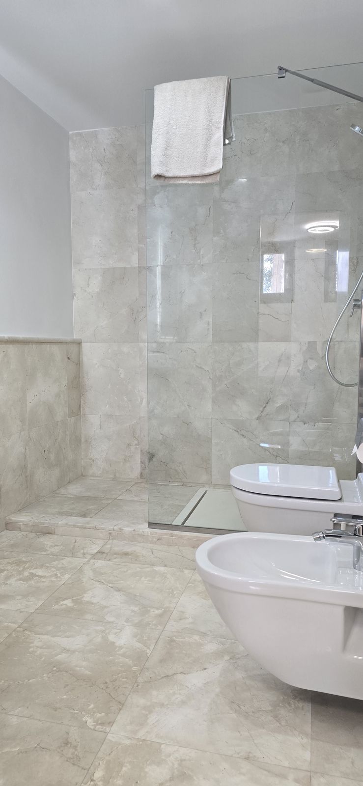The villa features underfloor water heating throughout the entire home, ensuring optimal comfort. Additionally, four expansive terraces enhance the living space, providing ample room for outdoor relaxation and entertainment.