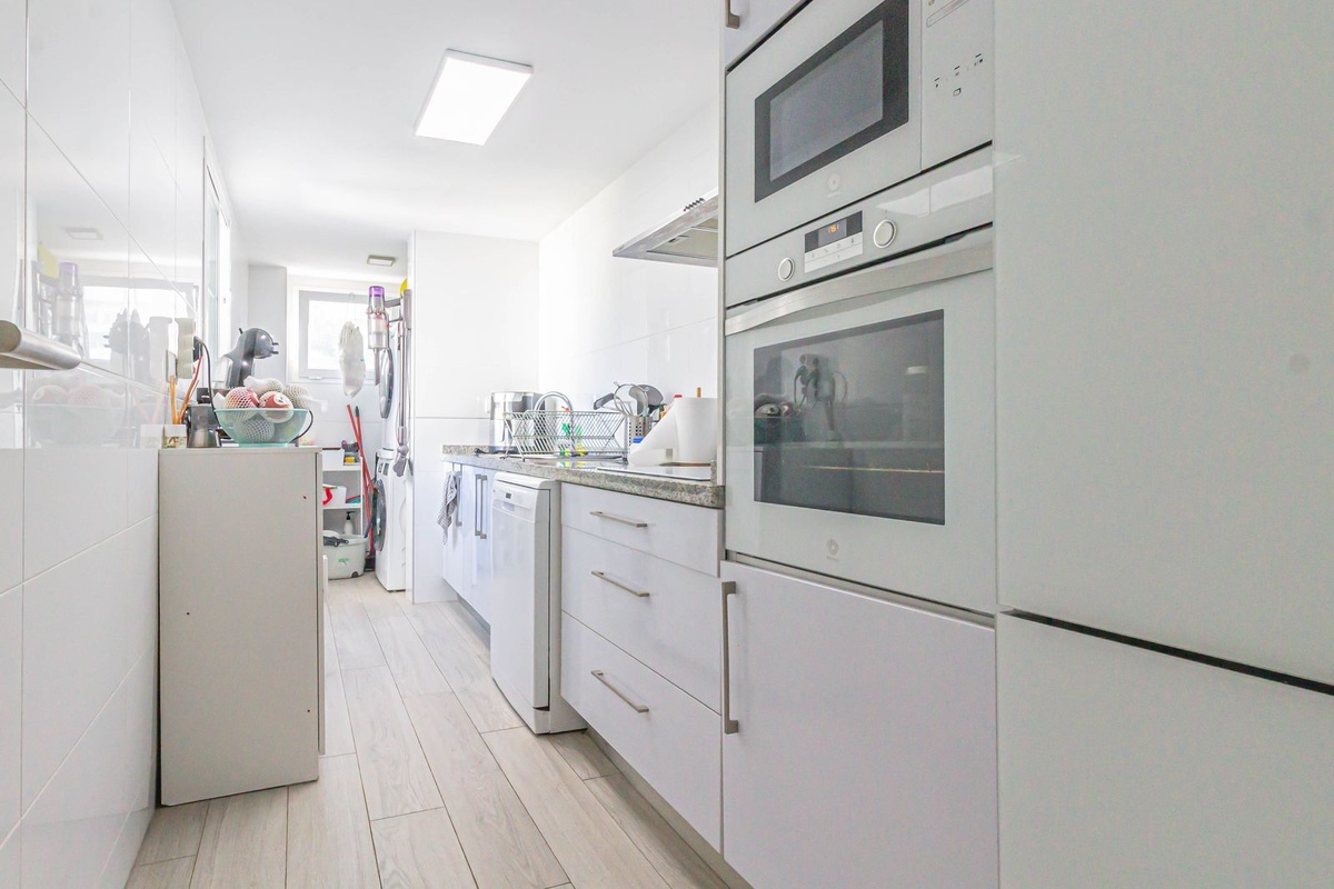 The modern and functional kitchen is delivered fully furnished and equipped with appliances: ceramic hob, oven, combi refrigerator, dishwasher and extractor hood. Next to it, a spacious and cosy living-dining room opens onto a fantastic 20 m² terrace, ideal for enjoying the outdoors and the tranquillity offered by its natural surroundings.