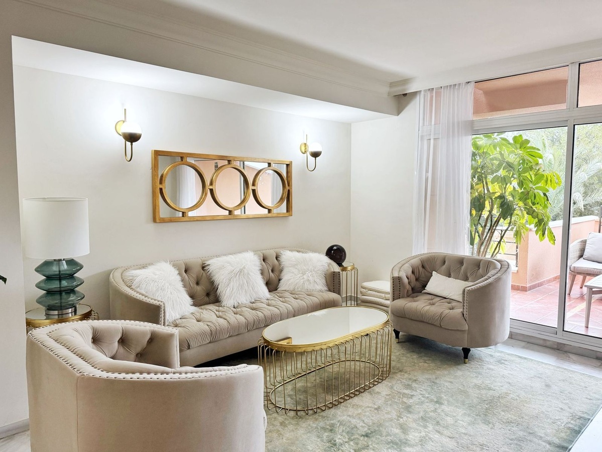 Located in the exclusive Magna Marbella development, in the heart of Nueva Andalucía, is this elegant two-bedroom, two-bathroom apartment that reflects sophistication and luxury. Recently decorated with designer furniture, this space is ready to be inhabited and offers a contemporary living experience.