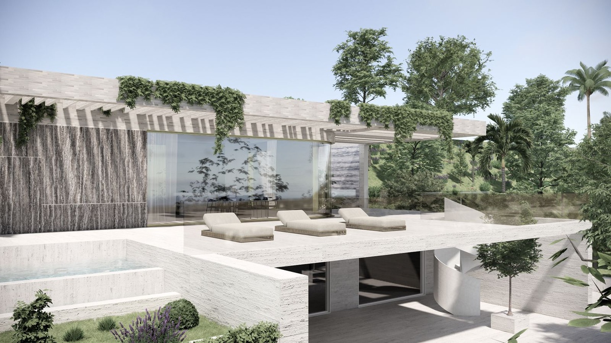 Het verhoogde perceel van de villa maakt optimaal gebruik van de bevoorrechte ligging in Monte Mayor en biedt een adembenemend uitzicht op het zuiden over de Middellandse Zee en de omliggende bergen. De leefruimtes binnen zijn zorgvuldig ontworpen om de natuurlijke omgeving aan te vullen, met grote open ruimtes, eigentijdse architectuur en overvloedig natuurlijk licht die een naadloze verbinding tussen binnen en buiten creëren. Na voltooiing zal het huis in totaal vijf en-suite slaapkamers hebben, elk ontworpen om de grootst mogelijke privacy en comfort te bieden. Met een extra gastentoilet voor de gemeenschappelijke ruimten is aan elk detail gedacht om zowel gemak als elegantie te verbeteren.