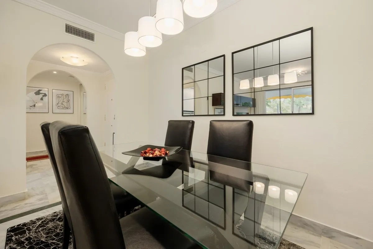 Met de locatie kunt u ook genieten van prachtige stranden in de buurt, zoals Playa Nueva Andalucía en Playa Canina Ventura del Mar, perfect om te ontspannen in de zon of wandelen langs de zee.Voor degenen die op zoek zijn naar activiteiten in de buitenlucht, is Lago de Las Tortugas een charmante plek die u uitnodigt om contact te maken met de natuur.In termen van vrije tijd en winkelen is het gebied de thuisbasis van winkelcentra zoals Centro Plaza en Marbella Arena, die exclusieve winkels en entertainment combineren.