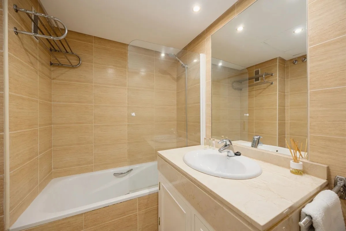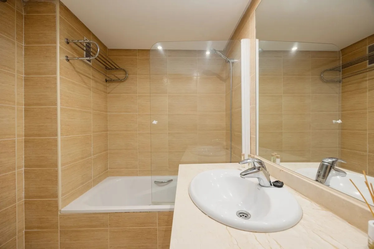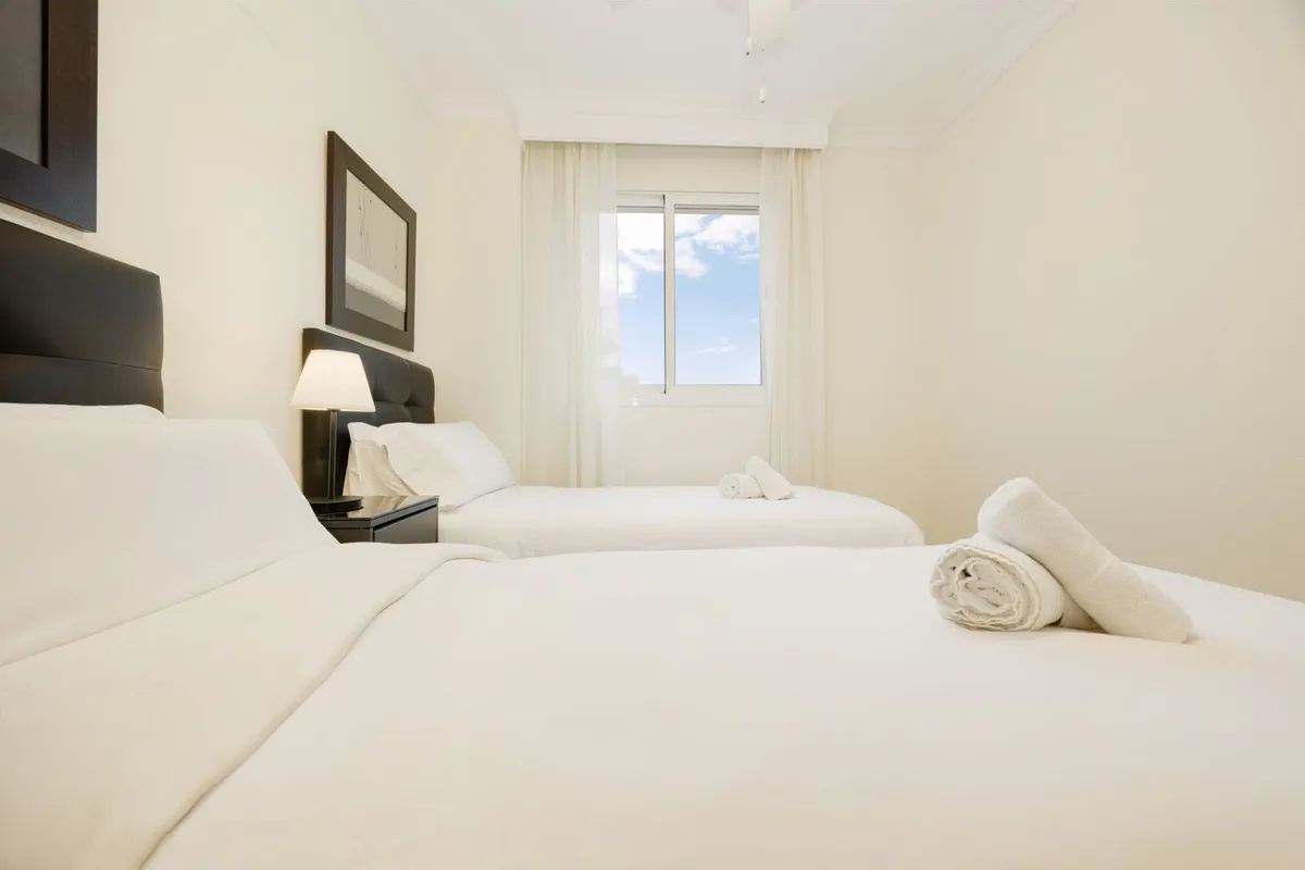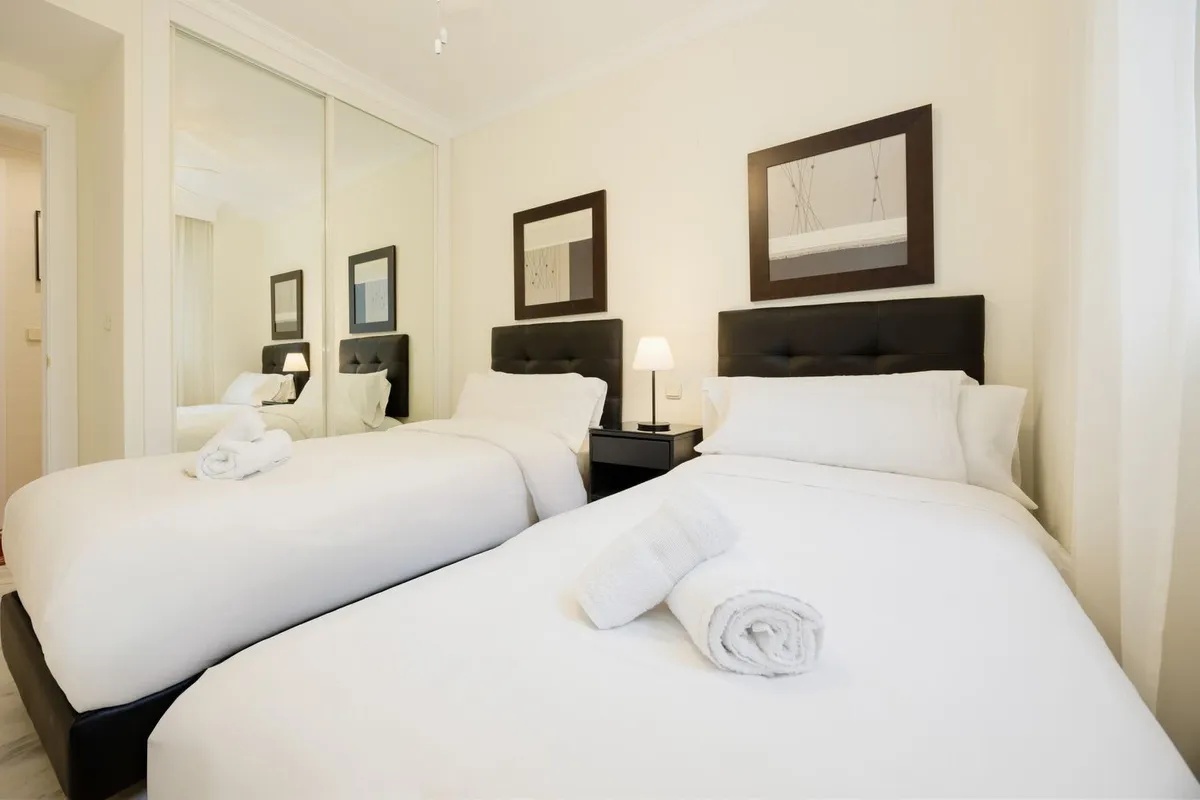 De hoofdslaapkamer, en suite, heeft een tweepersoonsbed en een volledige gespiegelde kast, terwijl de secundaire slaapkamer twee comfortabele eenpersoonsbedden van 90 heeft, en een andere kast, deze ook volledige lengte, het is ook naast de andere badkamer van het pand.Beide badkamers, de en-suite en die buiten, hebben een badkuip met ingebouwde douche, en de en-suite badkamer is gelakt in marmer.Beide slaapkamers hebben ons eigen beddengoed en handdoeken.