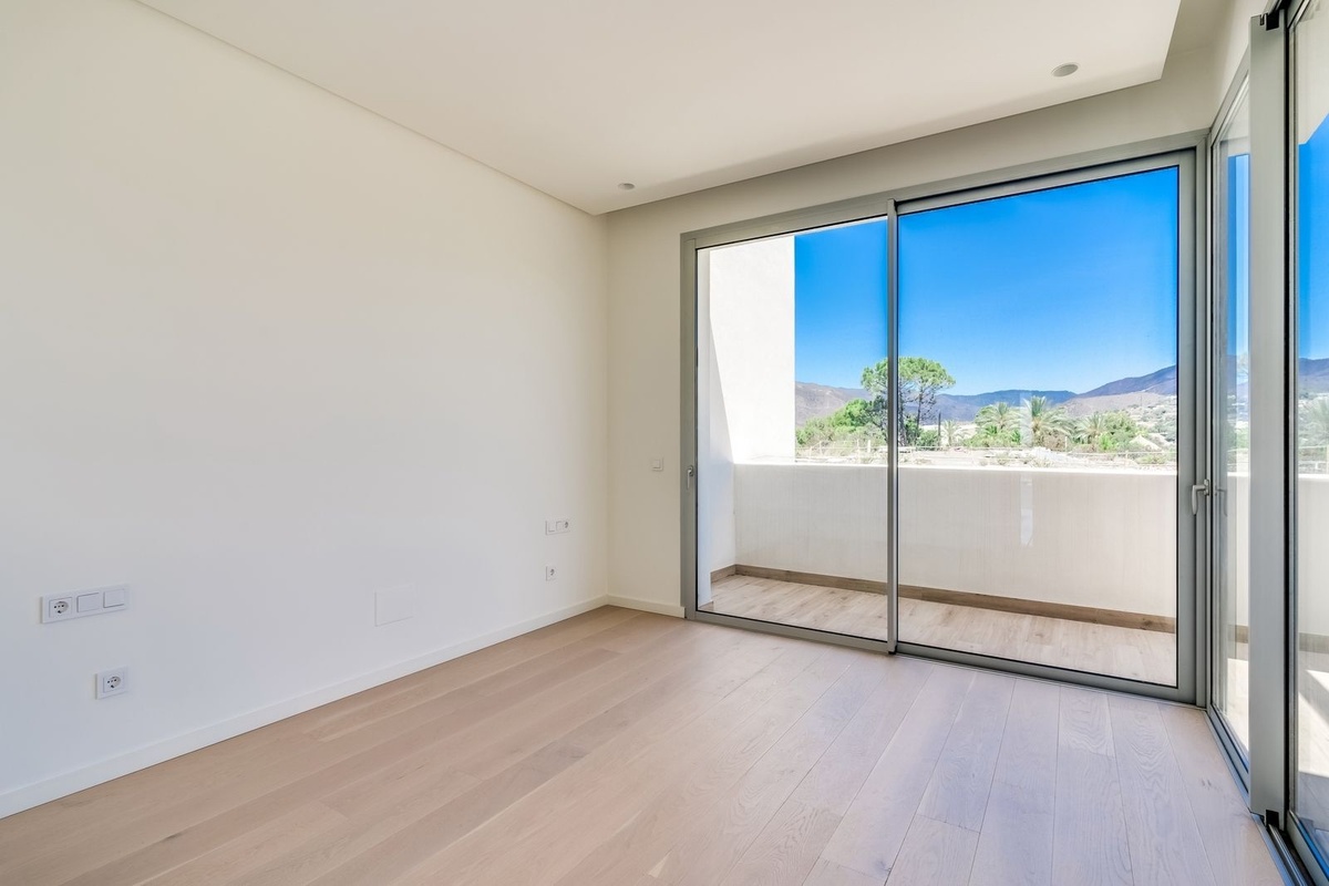 Een van de opvallende kenmerken van het appartement is het panoramische terras, dat een adembenemend uitzicht biedt op de Middellandse Zee, de omliggende bergen en de weelderig groene golfvalleien. Of je nu 's ochtends geniet van een kopje koffie of 's avonds dineert, het uitzicht wordt het hart van de ervaring.