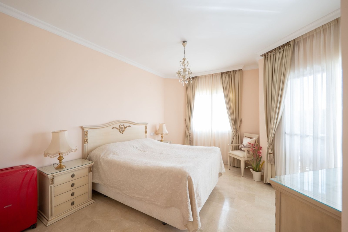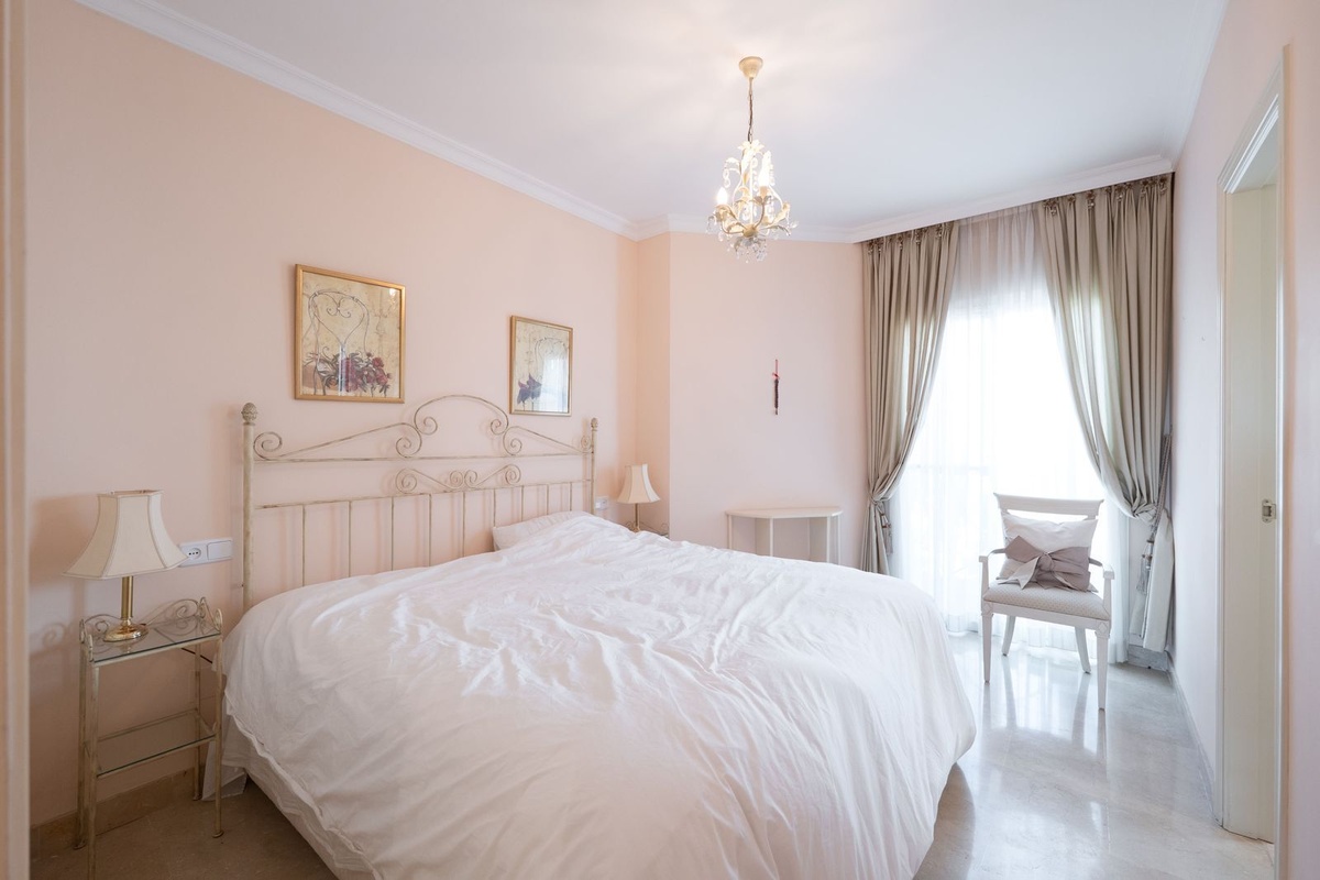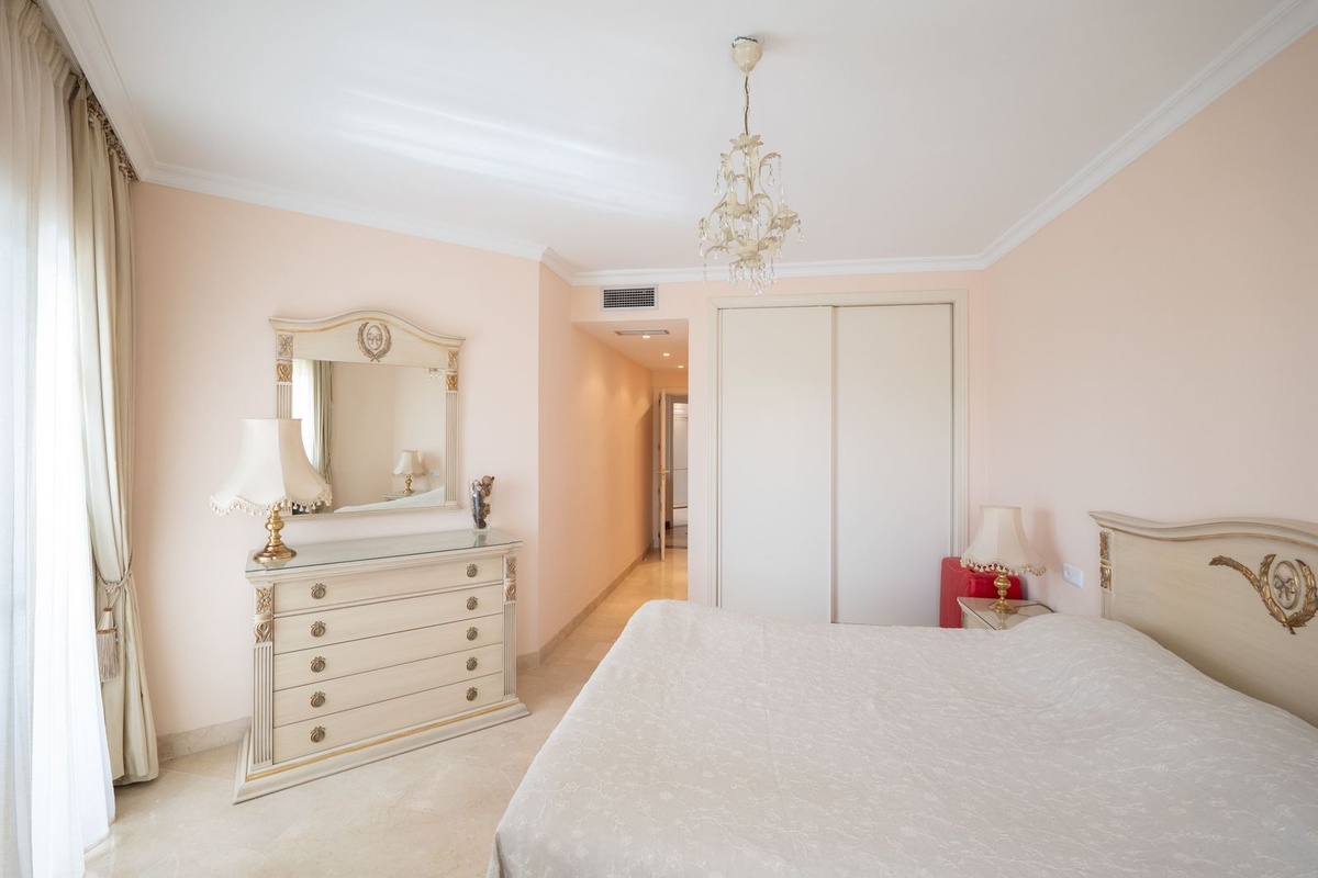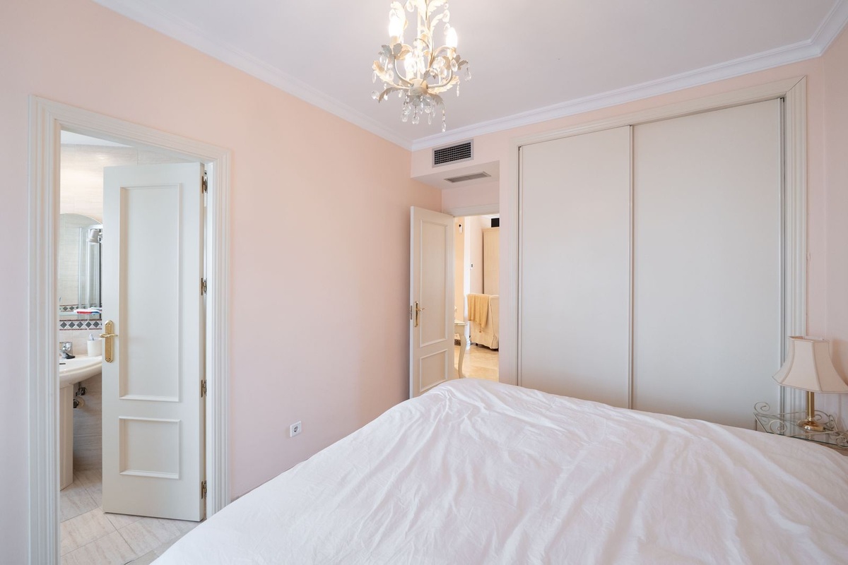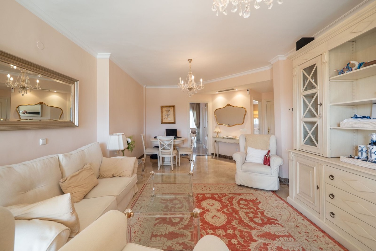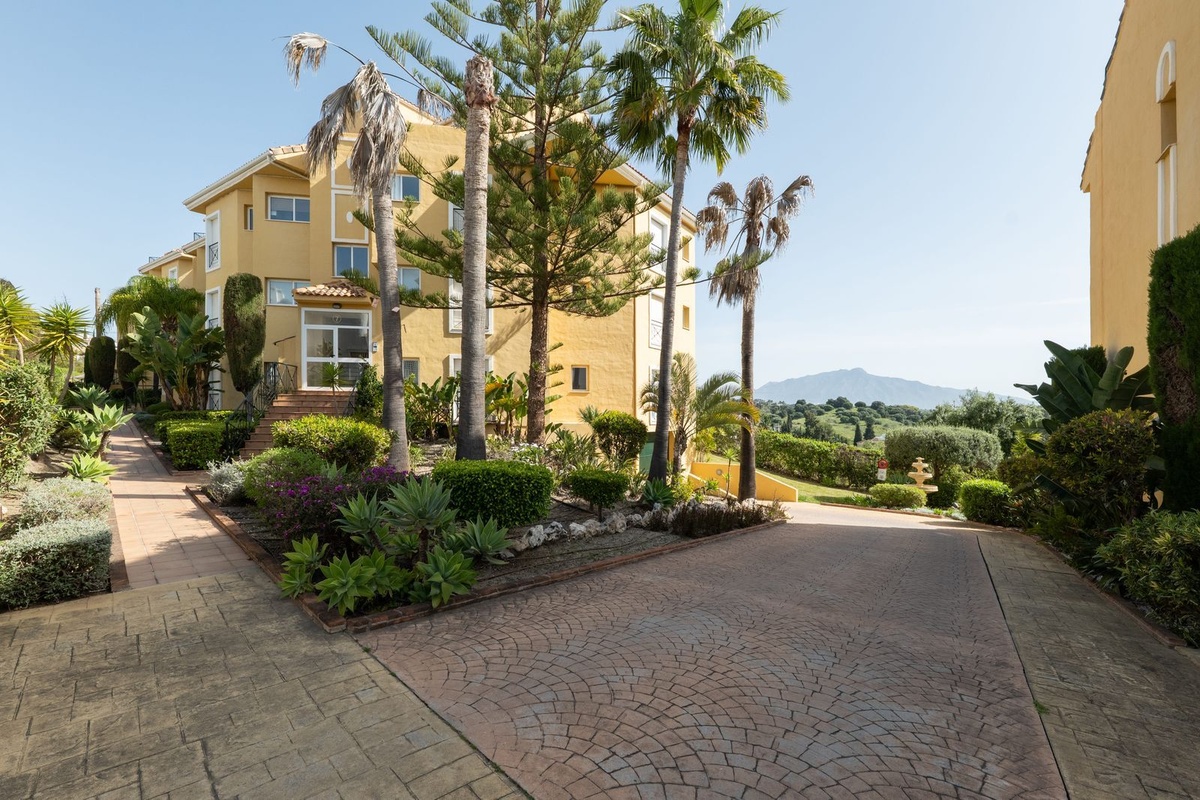 Dit op het zuidoosten gelegen appartement ligt in de populaire wijk Bel Air en heeft twee ruime slaapkamers met panoramisch uitzicht op de zee, de berg La Concha en de golfbaan.