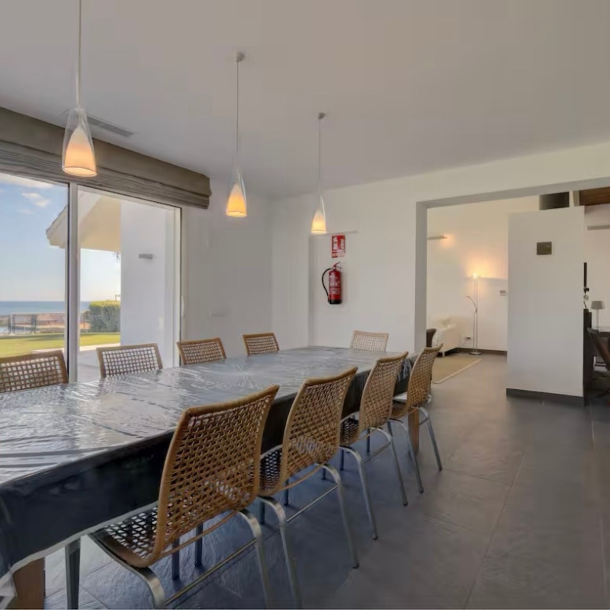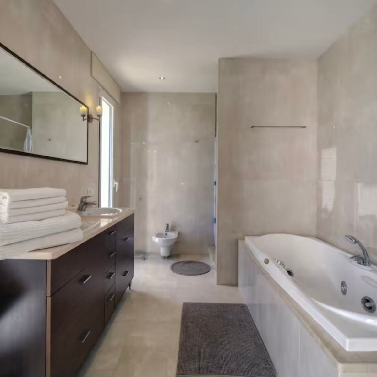 Moderne luxe villa gelegen op een uitgestrekt privé en rustig landgoed met adembenemend uitzicht op zee en de bergen voorzien van een privé infinity pool van 16 bij 6 meter omringd door zonneterrassen en schaduwrijke plekken ideaal om te ontspannen te zonnebaden of buiten te dineren meer dan 300 dagen zon per jaar terrassen aan de voor- en achterzijde van het huis om de hele dag van de zon te genieten prachtige tuinen met palmbomen en bloemen veel ruimte om te spelen of tot rust te komen volledig omheind. en achterzijde van het huis om de hele dag van de zon te genieten prachtige tuin met palmbomen en bloemen veel ruimte om te spelen of tot rust te komen volledig omheind terrein dus perfect voor gezinnen met kinderen de hoofdvilla beschikt over 2 tweepersoonsslaapkamers met eigen badkamer op de begane grond en 2 driepersoonskamers met gedeelde badkamer op de bovenverdieping het privé appartement ligt net onder het zwembad op ongeveer 50 meter van de villa en beschikt over 2 tweepersoonsslaapkamers een complete badkamer een woonkamer een eetgedeelte een keuken airconditioning een eigen terras en een speelruimte met tafeltennis en darts totale capaciteit voor maximaal 16 gasten 14 in bedden en 2 op een slaapbank in de woonkamer van het appartement voor groepen tot 10 personen is het appartement toegankelijk als speelruimte zonder toegang tot de slaapkamers vanaf 11 personen wordt het volledige appartement beschikbaar inclusief de slaapkamers volledige privacy gegarandeerd het appartement wordt nooit apart verhuurd exclusief gebruik van het hele terrein inclusief zwembad tuin en buitenruimtes volledig uitgerust met ligstoelen hangmatten parasols barbecue overdekt terras en buitentoilet wifi Apple TV Netflix SONOS Play 5 geluidssysteem privéparkeerplaats voor maximaal 6 auto's strand restaurants en bars op slechts 2 kilometer afstand een ideale plek voor families of groepen die op zoek zijn naar luxe comfort en volledige privacy in een schitterende mediterrane omgeving