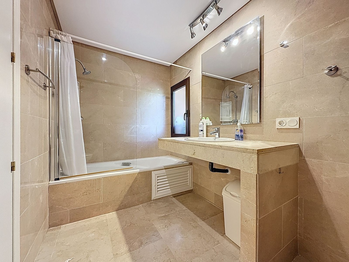 Het beschikt over 2 slaapkamers, beide met ruime inbouwkasten en toegang tot een terras; een mooie, lichte woonkamer met uitzicht op zee; en 2 volledig uitgeruste badkamers - een met een bad en geïntegreerde douche, en de andere met een douche. Vanuit de volledig uitgeruste keuken met aparte wasruimte kun je genieten van prachtig uitzicht op zee terwijl je kookt of een kopje koffie drinkt.