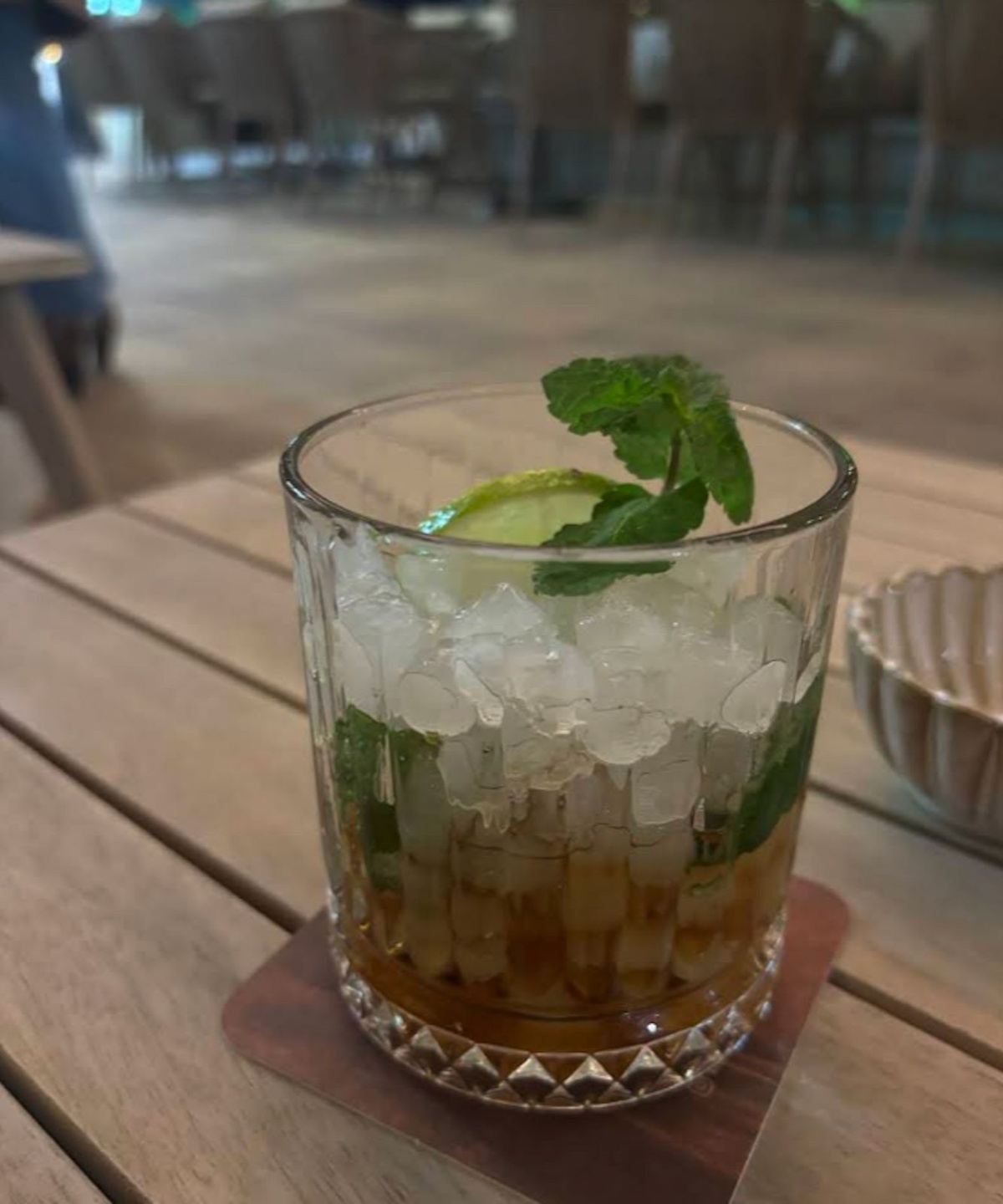It has two terraces, each with a total capacity of 25 or more tables. One overlooks the beach, and the other terrace overlooks the other side, where there is a pedestrian path where many people always pass by.
