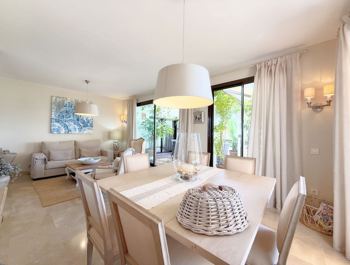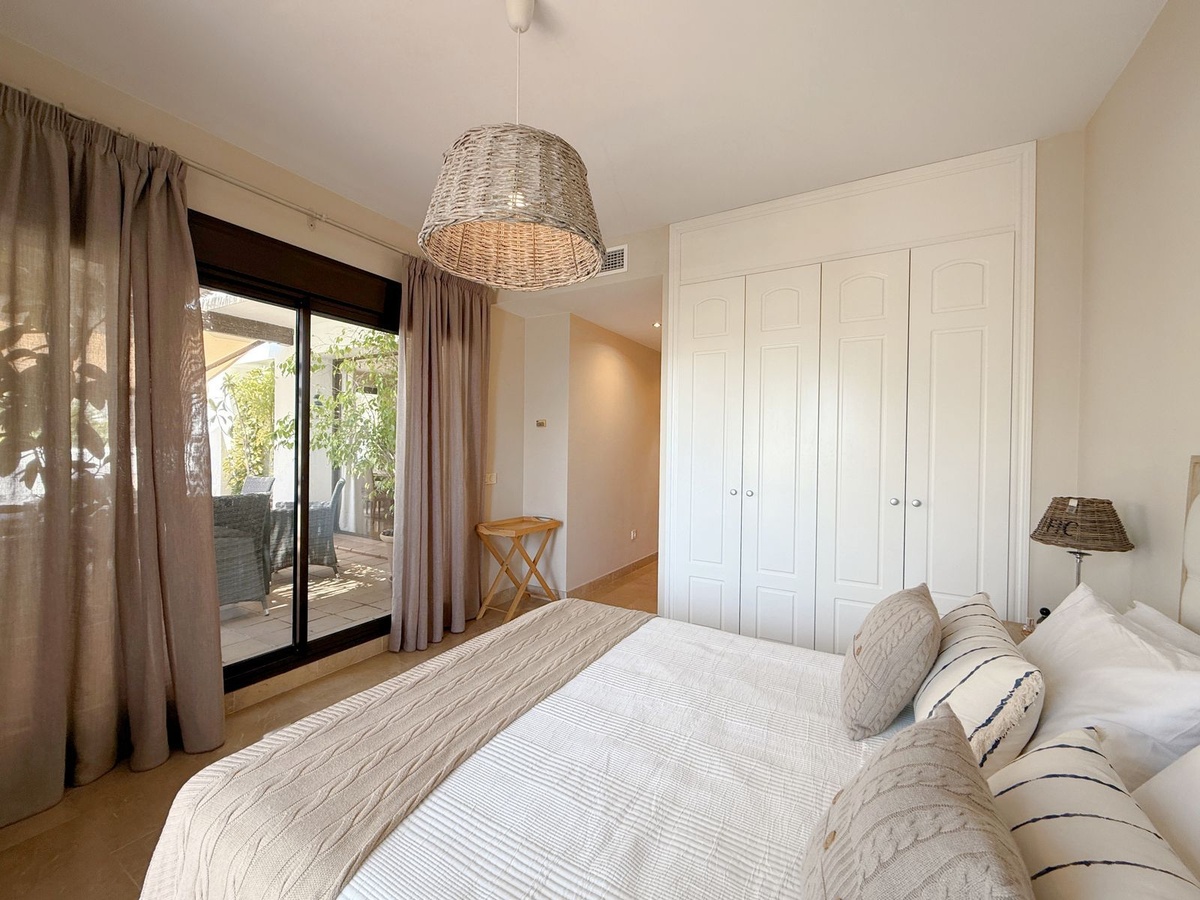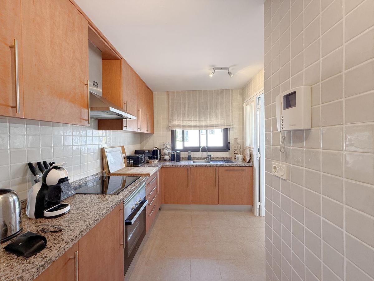 De woning is in uitstekende staat en instapklaar. Bij binnenkomst word je verwelkomd in een ruime en lichte woon-eetkamer met grote ramen die toegang geven tot een overdekt terras met zonneschermen – perfect om het hele jaar door van te genieten. Er zijn twee tweepersoonsslaapkamers en twee volledige badkamers (waarvan één en suite), allemaal stijlvol ingericht in een natuurlijke en elegante sfeer. De volledig uitgeruste keuken is ontworpen voor comfort en praktisch gebruik.
