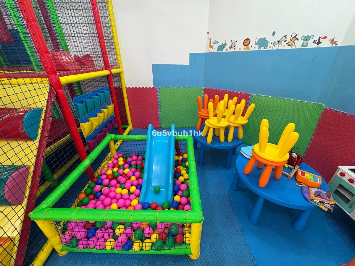 The space is fully fitted out, with play structures, a party area, and a reception area—ideal for hosting children's parties, workshops, and themed events.