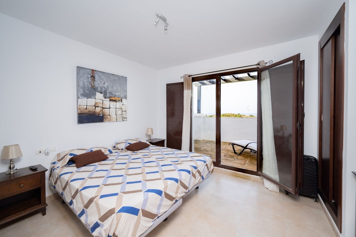 Eerste niveau-eigentijdse keuken, open woon- en eetkamer, groot naar het zuidwesten gerichte terras, dubbele slaapkamer met gasten met zee- en bergaanzicht en volledige badkamer.