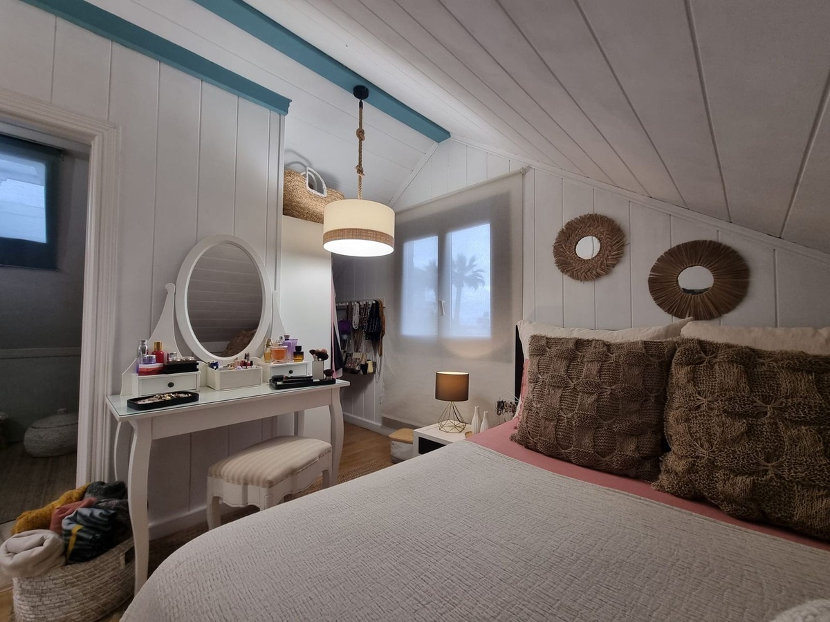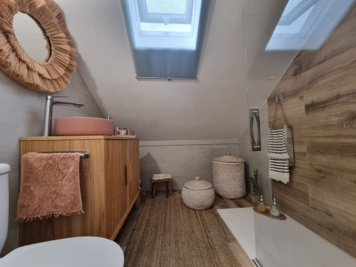 - Bovenverdieping: twee slaapkamers met gewelfde plafonds en een extra badkamer.