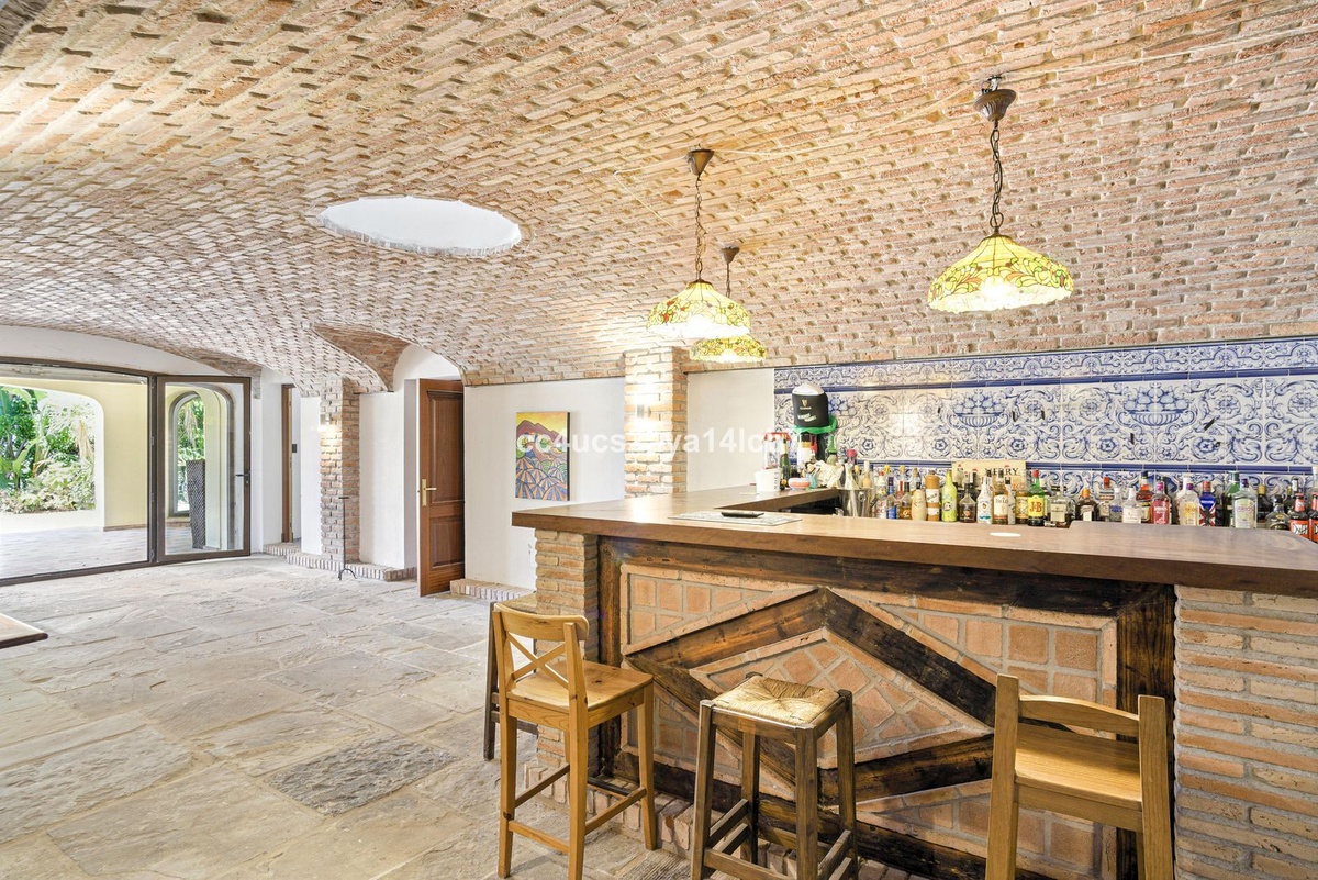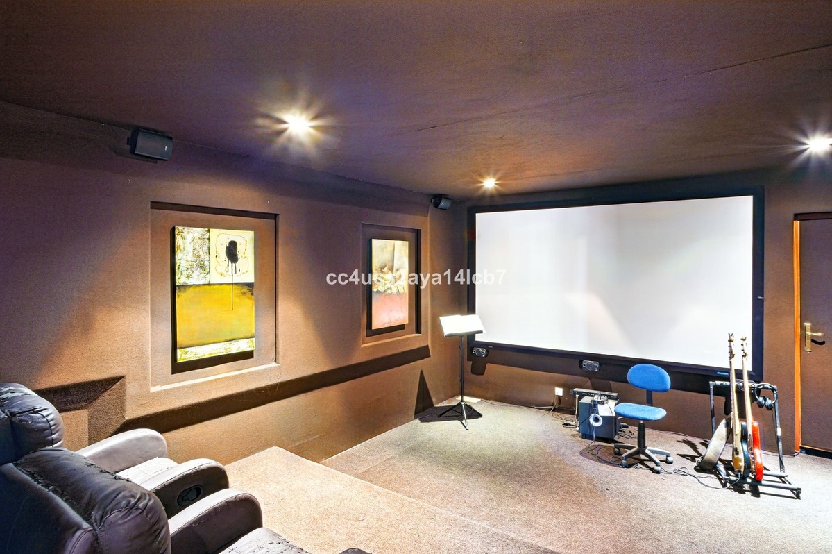 De kelderverdieping van het huis is uitzonderlijk uniek voor een Spaans huis. Het bevat een volledig uitgeruste bar, pooltafel, bijkeuken, fitnessruimte en een aparte kamer met douche en toilet, die dienst kan doen als extra slaapkamer. Een van de opvallende kenmerken is de bioscoopzaal, allemaal afgewerkt met opmerkelijke historische accenten, waaronder 500 jaar oude Tudorstenen en vloeren die zijn geborgen uit een traditionele katoenfabriek.