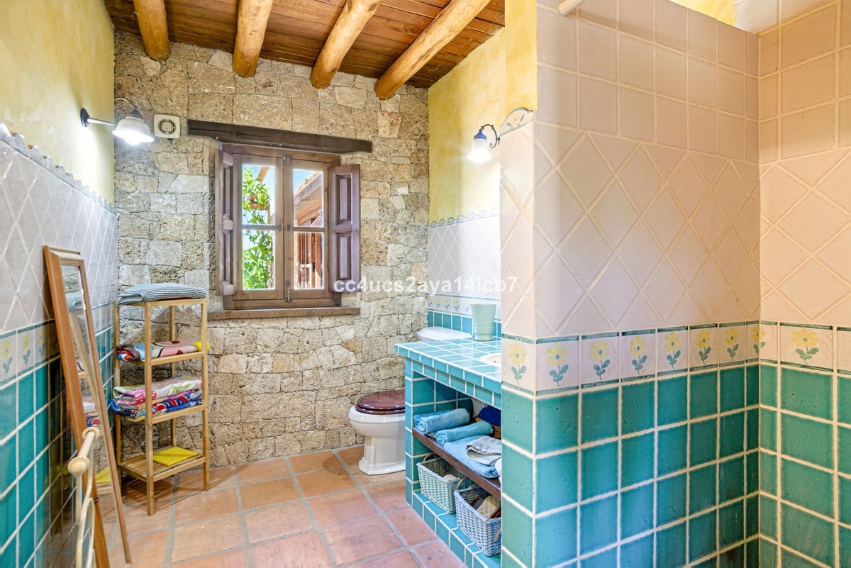 Naast het hoofdhuis ligt een charmant gastenhuisje of casita, gebouwd met authentieke Spaanse kalksteen. Deze prachtige ruimte heeft twee slaapkamers, een badkamer en een volledig ingerichte keuken, compleet met pizzaoven. De vloer is een bijzonder kenmerk, afkomstig uit de oorspronkelijke Guinness-fabriek.