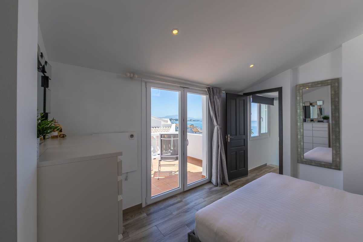 Modern and elegant villa with extraordinary panoramic views of the sea, the mountains, Gibraltar, and Africa, located in a privileged area with direct access to beautiful beaches via a convenient footbridge or an easy underground tunnel. This property is part of a unique architectural complex designed by renowned European architect Aubrey David, widely awarded for his innovative and aesthetic approach. Set within a well-established and meticulously maintained residential community, it offers access to six communal swimming pools, mature gardens, a gym, and a tennis court. Each villa in the complex features a unique design and layout, adding to the exclusive character of the community. The villa enjoys an excellent location, just a short drive from Estepona, La Duquesa, and Sabinillas, and well connected to Sotogrande, Marbella, Gibraltar, and Málaga Airport. All essential services, supermarkets, schools, and the new hospital are conveniently close, just 2 km away. Ideal for golf enthusiasts, the property is next to Estepona Golf and close to prestigious courses such as Finca Cortesin. Facing southeast and recently renovated, the villa retains its charming original rustic style. It is laid out over several levels, allowing for an abundance of natural light through its many windows. The home features several terraces with different orientations, a private pool, and a spacious covered parking area. Holiday rentals are allowed, with a 20% supplement applied to the community fee. A property full of character, charm, and an unbeatable location. Highly recommended for viewing.