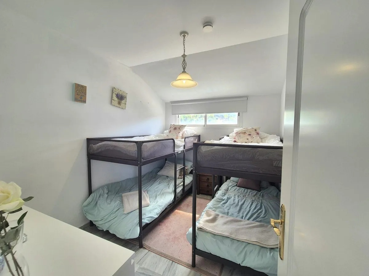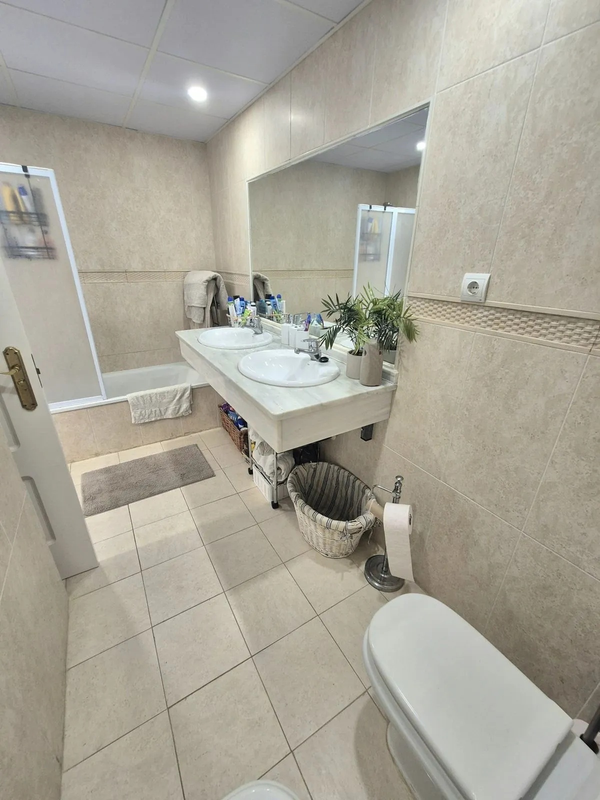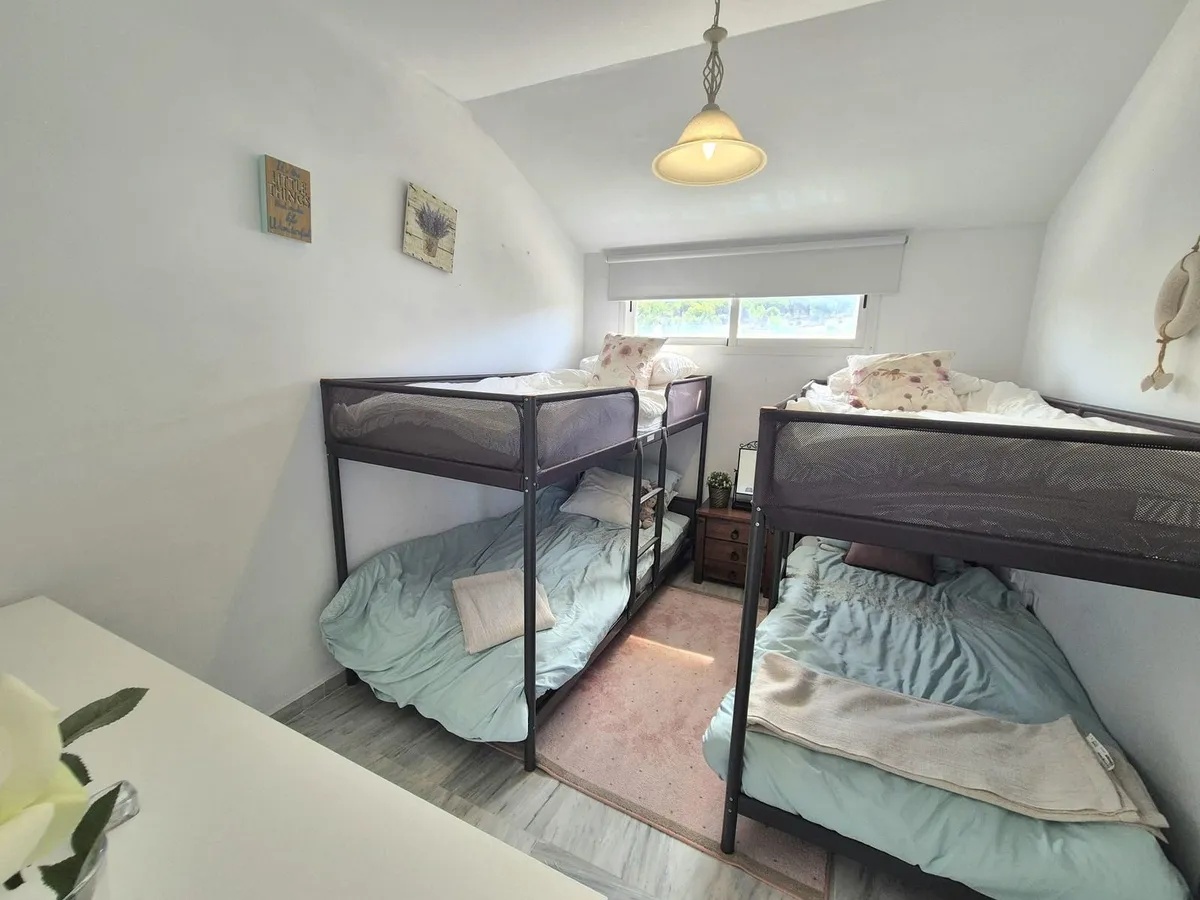 De toegang tot het appartement is eenvoudig via de lift of trap vanaf de hoofdingang of direct vanaf de parkeerplaats, waar u een overdekte parkeerplaats en een ruime berging vindt.De gemeenschap is prachtig onderhouden, met twee zwembaden en weelderig aangelegde tuinen, die een rustige en pittoreske omgeving bieden.