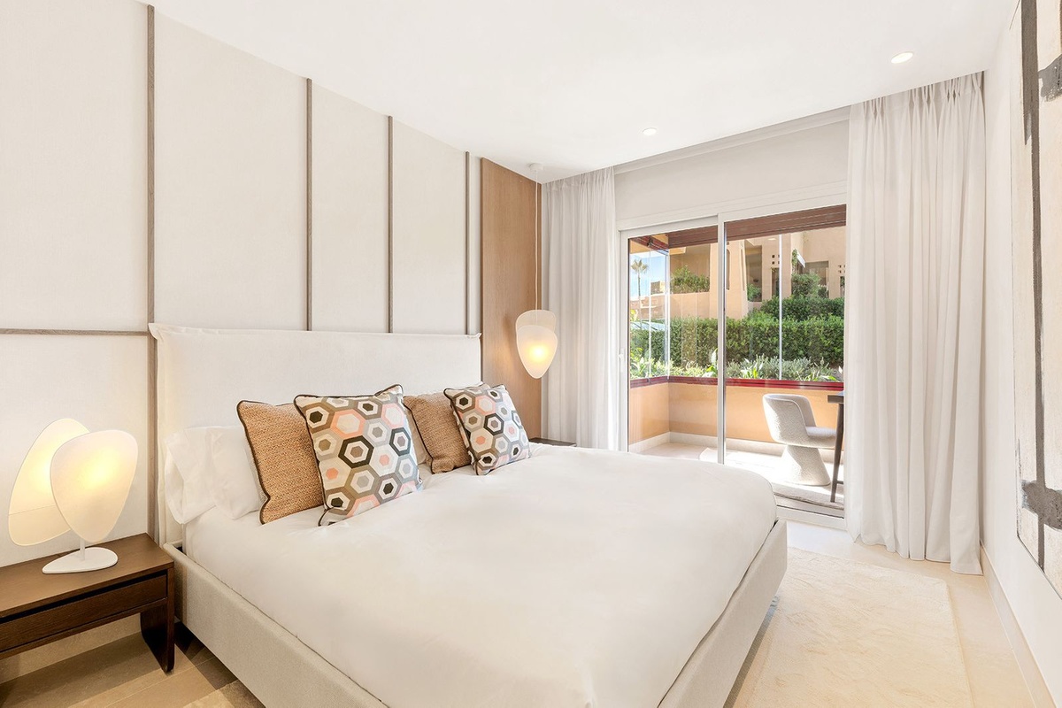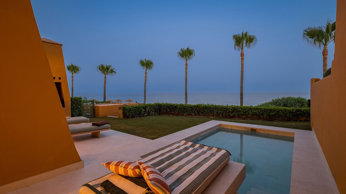 Step into a world of beachfront luxury with this extraordinary 4-bedroom garden apartment, set on the front line of the Mediterranean in one of the Costa del Sol’s most coveted and secure developments. Located in a prestigious beachfront complex with 24-hour security, this fully renovated residence boasts 186 m² of refined interior space, private gardens, and its very own pool — a rare find that offers the ultimate in privacy, comfort, and Mediterranean sophistication.