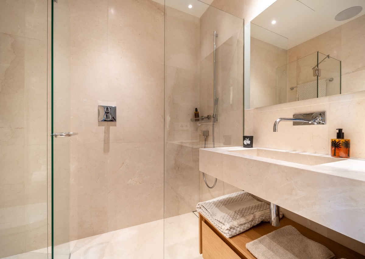 Het pand biedt drie ruime slaapkamers en drie stijlvolle badkamers en biedt overal comfort en rust.De master suite dient als een serene privé -retraite, terwijl de extra slaapkamers genieten van kalmerende tuin en heuvels.Verwarming onder de vloer zorgt voor het hele jaar door comfort en een aparte bijkeuken voegt gemak toe.
