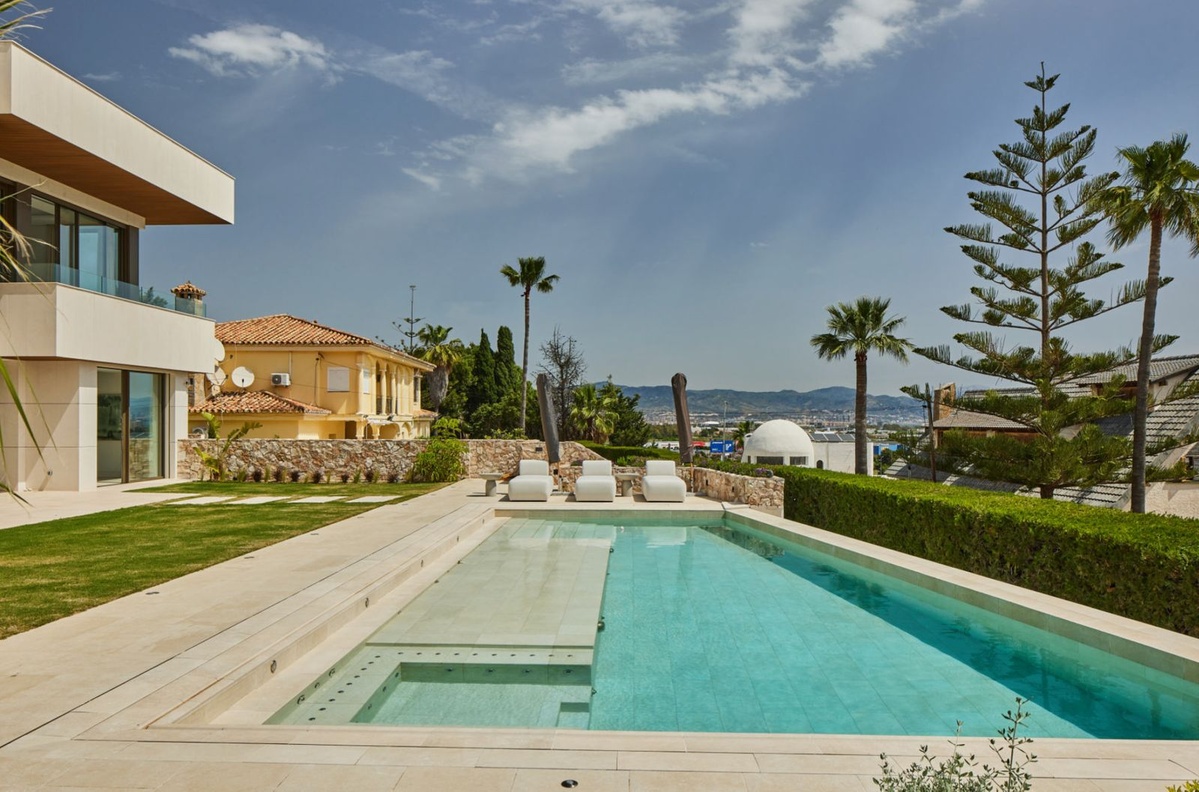 Verspreid over een aanzienlijk perceel van 1.318 vierkante meter heeft de villa een woonoppervlakte van 490 vierkante meter, aangevuld met een ruim terras van 181 vierkante meter. De woning is voltooid in 2024 en is voorzien van materialen van de hoogste kwaliteit, zoals porselein, steen, hout, microcement en marmer, wat de toewijding aan duurzaamheid en moderne elegantie onderstreept. Het ontwerp van de woning maximaliseert de oriëntatie op het zuiden, wat zorgt voor een panoramisch uitzicht over de sprankelende Middellandse Zee en de weelderige heuvels vanaf meerdere uitkijkpunten in de woning.