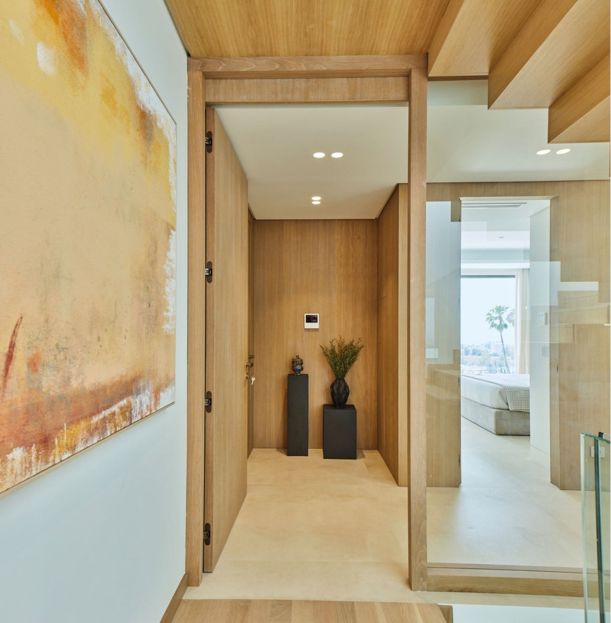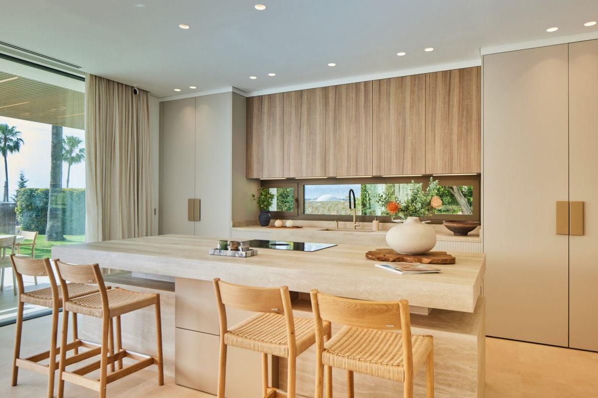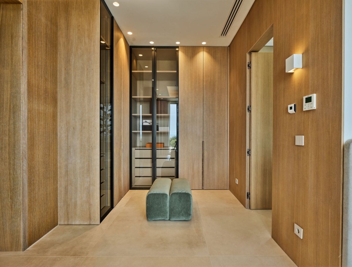 Op de eerste verdieping zijn nog eens drie slaapkamers, allemaal ontworpen om een gevoel van openheid en rust te bieden, elk met toegang tot een terras dat de essentie van het leven aan de kust weergeeft. De kelderverdieping is zorgvuldig ontworpen als een toevluchtsoord, met een volledig uitgeruste fitnessruimte, sauna, bioscoop en een extra slaapkamer - ideaal voor gasten of flexibel gebruik indien nodig.