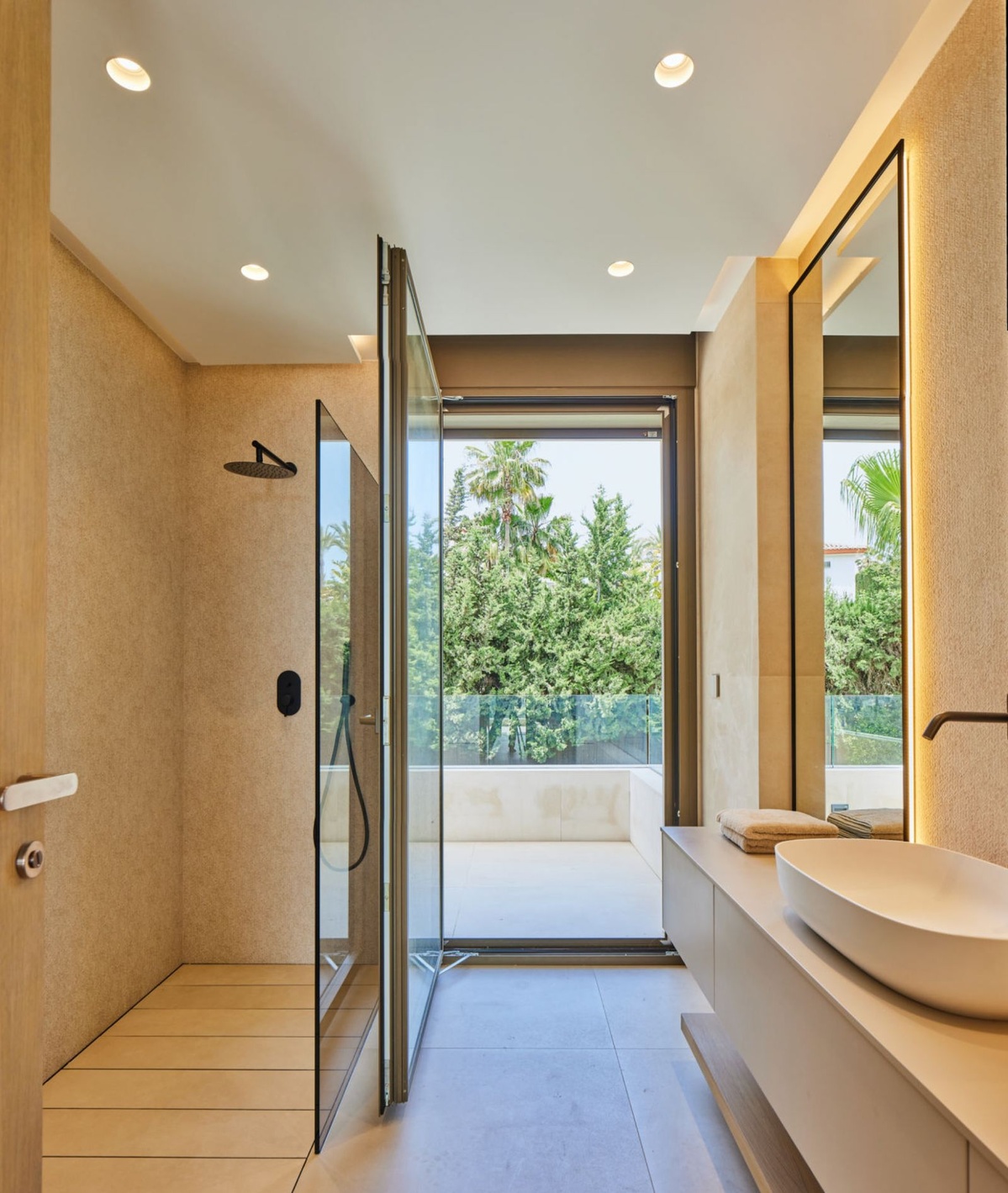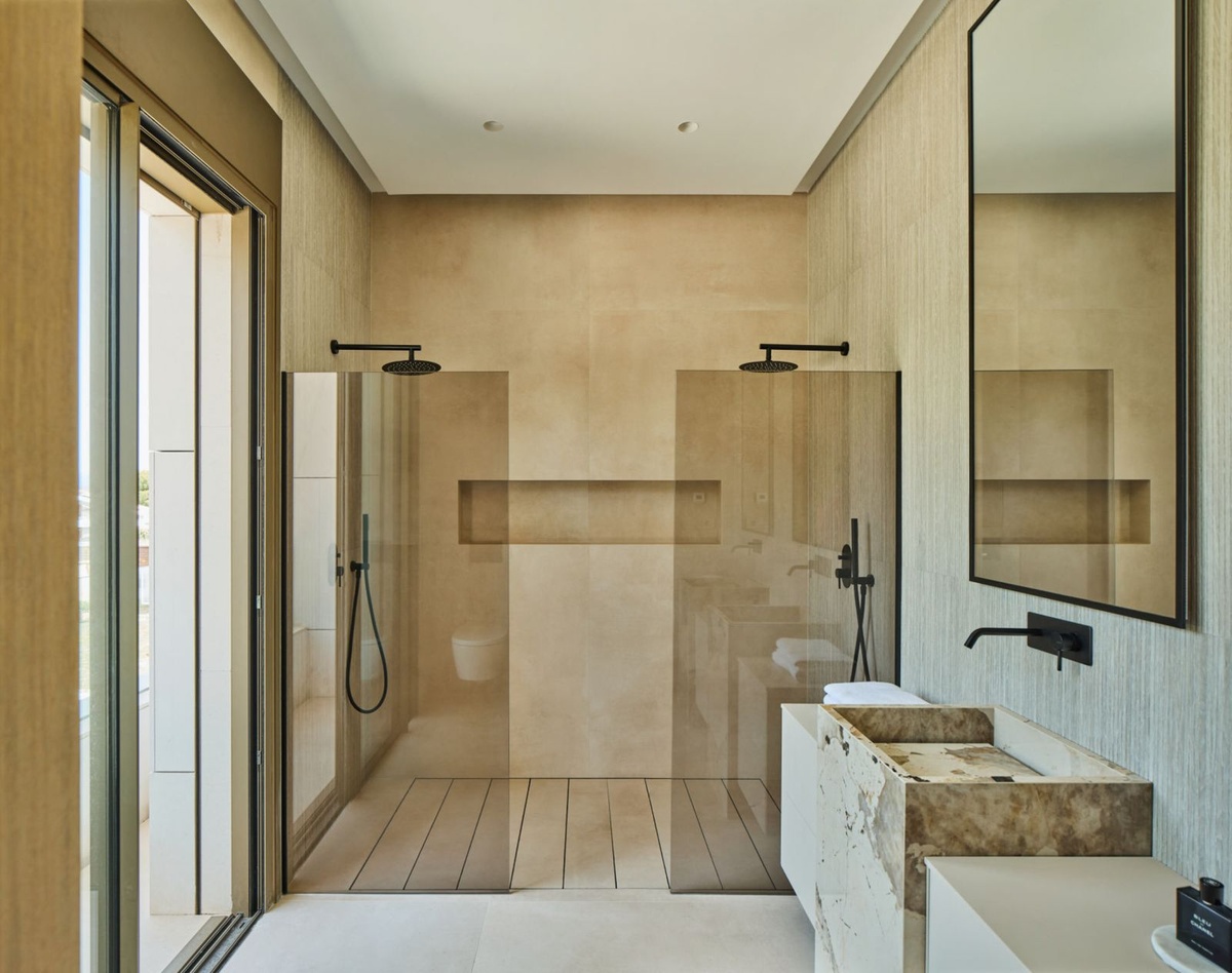 Casa Lux heeft vijf zorgvuldig ontworpen slaapkamers, elk met een eigen badkamer om privacy en comfort voor elk gezinslid en gast te garanderen. Een extra gastentoilet biedt gemak tijdens bijeenkomsten of het dagelijks leven. Op de begane grond loopt de moderne keuken van de villa naadloos over in een ruime woonkamer, waardoor een ideale ruimte ontstaat voor entertainment of tijd met het gezin. Op deze verdieping is ook een gastenslaapkamer en directe toegang tot het luxueuze zwembad, waardoor je van binnen naar buiten kunt leven in echte mediterrane stijl.