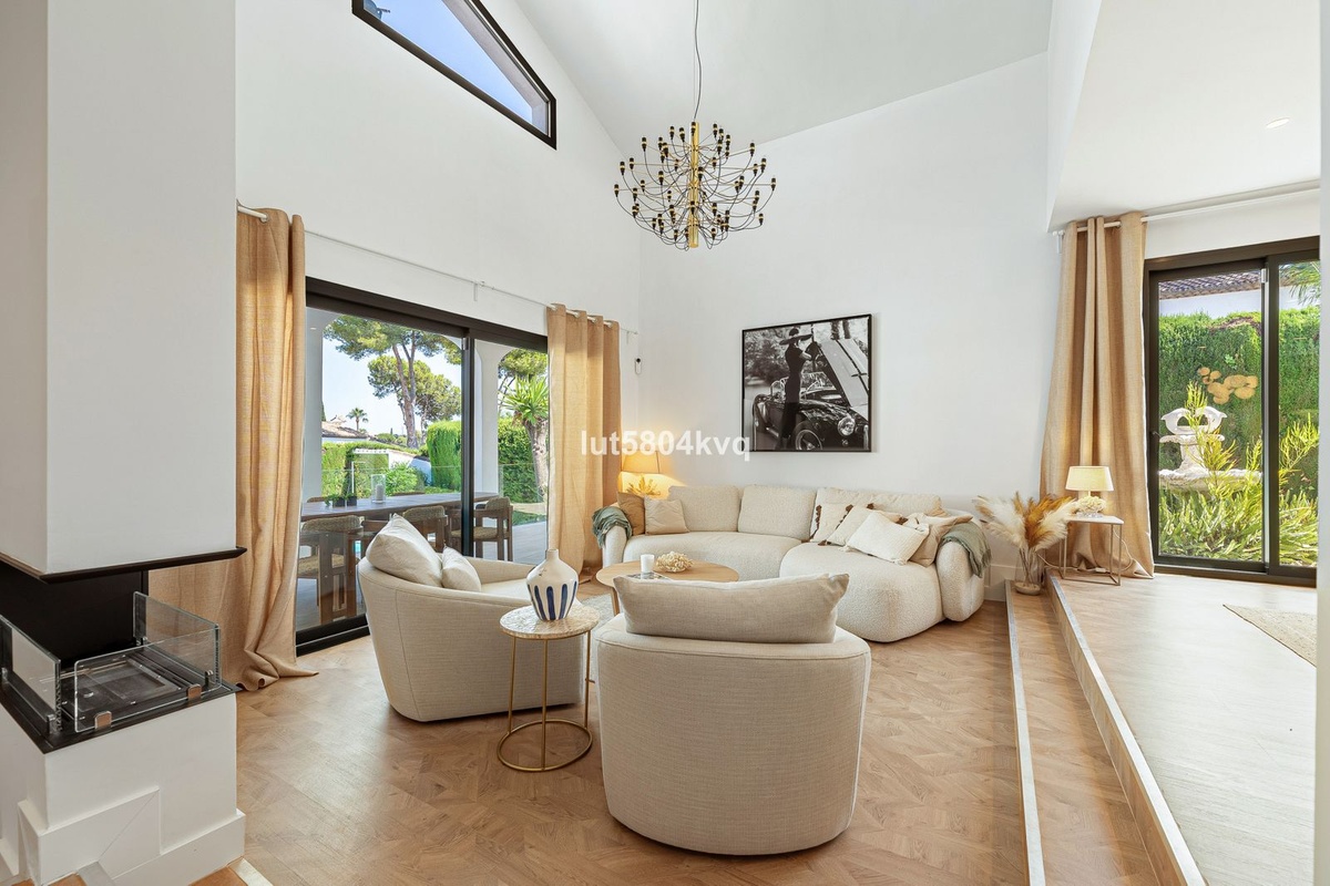 This lovely four-bedroom, newly renovated villa is located in the residential area of Nueva Andalucía, within the secure, gated community of Marbella Country Club.