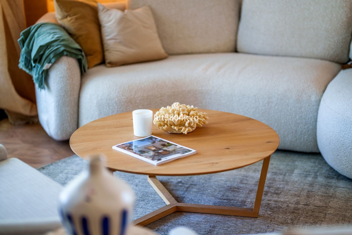 Inside, the design is contemporary and modern, reflecting its recent renovation. A modern boho-chic aesthetic defines the interiors, with light tones and natural textures creating an open, airy atmosphere.