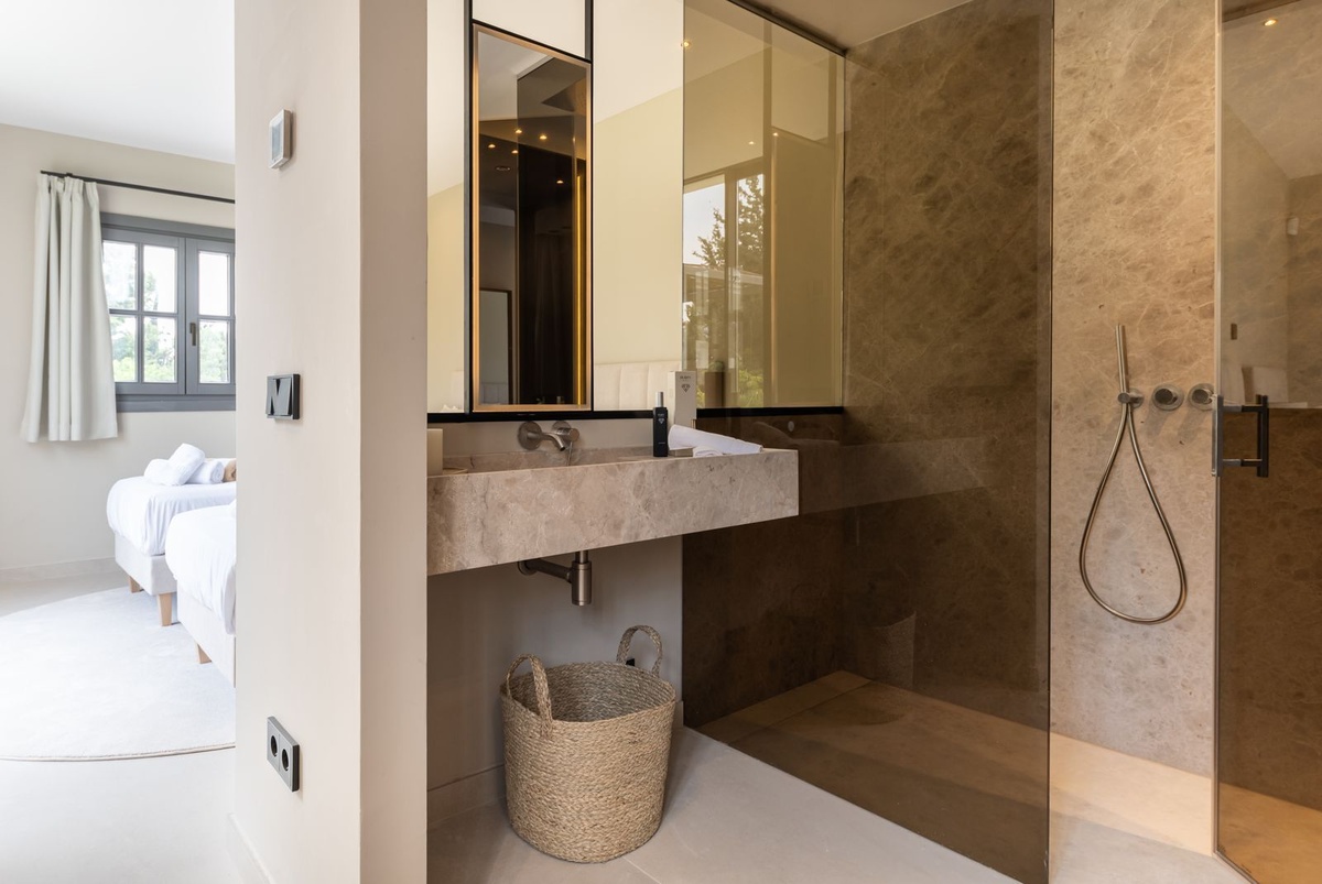 This Villa is a captivating Mediterranean residence ideally situated in the sought-after enclave of Atalaya, just 400 metres from the prestigious Atalaya Golf Club. Drawing inspiration from classic Andalusian architecture while embracing contemporary elegance, this home is a harmonious blend of style and comfort. The villa is set within beautifully landscaped grounds that envelop the property, creating a private oasis of calm. Mature trees and vibrant greenery enhance seclusion, while a sparkling private pool offers the perfect spot to relax under the Spanish sun. Generous outdoor areas make it ideal for entertaining in style.