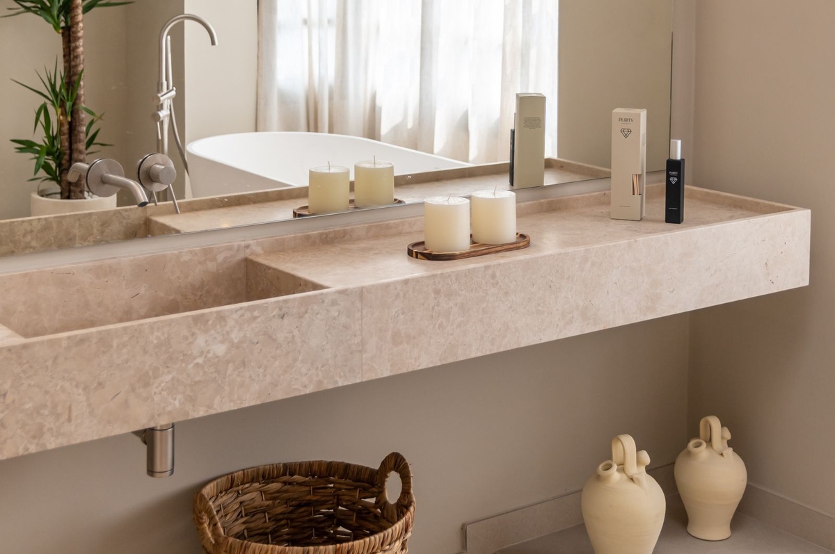 The villa boasts two master suites, each designed as a private retreat with expansive windows that fill the rooms with natural light and frame serene garden views. Both master bathrooms offer a luxurious spa-like experience, ensuring comfort and indulgence for owners and guests alike.