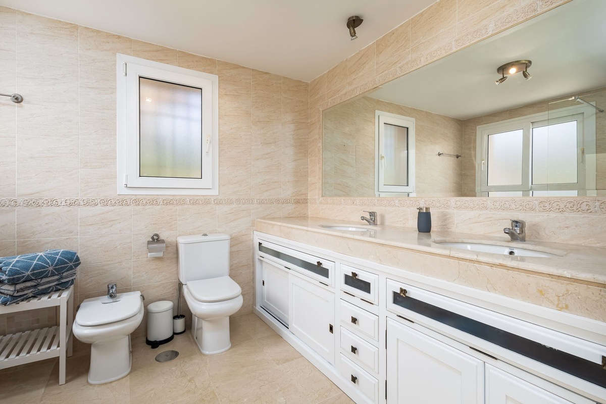 Op de bovenverdieping bevinden zich 3 slaapkamers en 2 badkamers, waaronder de master bedroom met ensuite badkamer en privéterras.