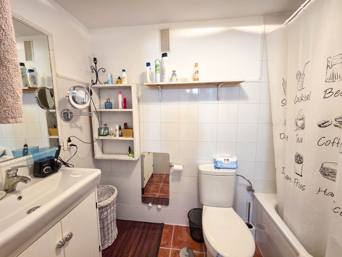 Binnen vindt u een volledig gemeubileerd interieur in uitstekende staat, met een comfortabele woonkamer, een volledig uitgeruste keuken en airconditioning (warm en koud) voor comfort het hele jaar door. Beide slaapkamers zijn voorzien van ingebouwde kasten en het gebouw biedt het gemak van een lift voor gemakkelijke toegang.