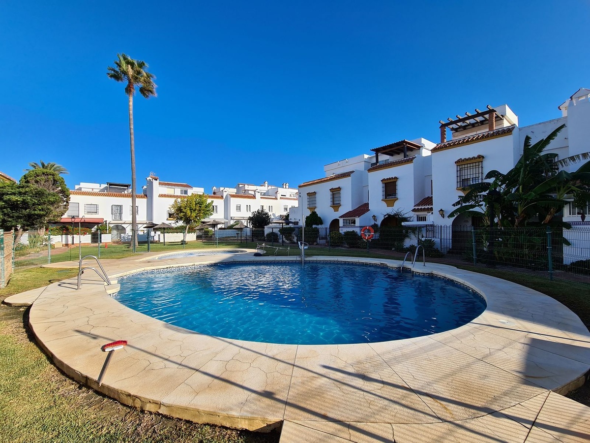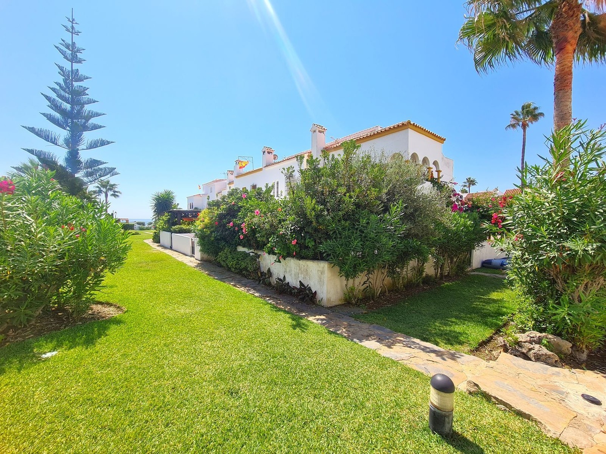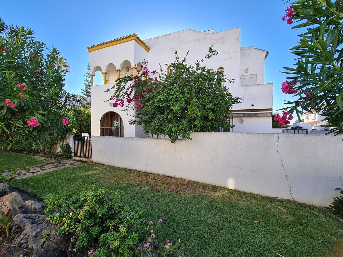 Uitstekend gelegen in een project aan het strand met toegang tot het kustpad dat de hele Costa del Sol verbindt, en het strand ligt op een steenworp afstand. Dicht bij supermarkten, winkels, restaurants en een breed scala aan recreatiemogelijkheden, Sabinillas ligt op slechts 2 minuten rijden en Estepona ligt op 10 minuten rijden, terwijl de luchthaven van Malaga op 90 minuten rijden ligt. Het pand is verdeeld over twee verdiepingen plus het solarium. Op de begane grond vinden we de hoofdingang met een ruime hal, een toilet met een raam, een grote keuken met toegang tot het achterterras, en een grote woon-eetkamer met een open haard en toegang tot een veranda die in verbinding staat met de grote privétuin. Op de eerste verdieping bevinden zich de drie slaapkamers, elk met een eigen terras en inbouwkasten. Het heeft ook een ruime complete badkamer uitgerust met een ligbad en een groot raam. De hoofdslaapkamer heeft een en-suite badkamer met een bad en een groot raam, evenals een prachtig overdekt privéterras. Op de bovenste verdieping hebben we een torentje, een berging en een groot solarium met uitzicht op de zee, de tuinen en het zwembad. Dit goed onderhouden complex biedt zwembaden, tuinen en toegang tot het strand. EEN GEWELDIGE KANS OM DE LUXE TE ERVAREN VAN EEN EIGEN HUIS OP EEN STEENWORP AFSTAND VAN DE ZEE!