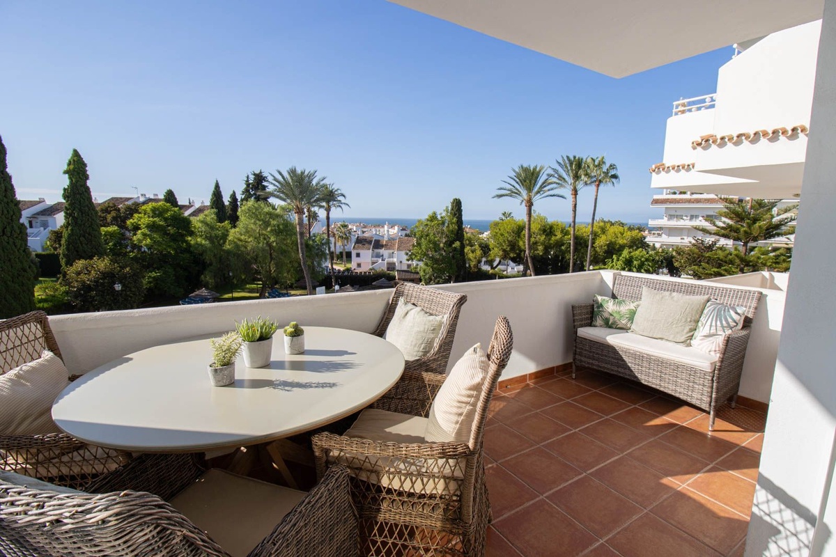 Het appartement heeft een open keuken naadloos verbonden met de woonkamer, waardoor een moderne en uitnodigende ruimte ontstaat.Vanaf hier stap je op een royaal terras met een eetgedeelte en een prachtig uitzicht op de weelderige tuinen en de Middellandse Zee.Het terras biedt ook een eigen hoek van de slaapkamer, ideaal voor barbecues of ontspannen buitenshuis.