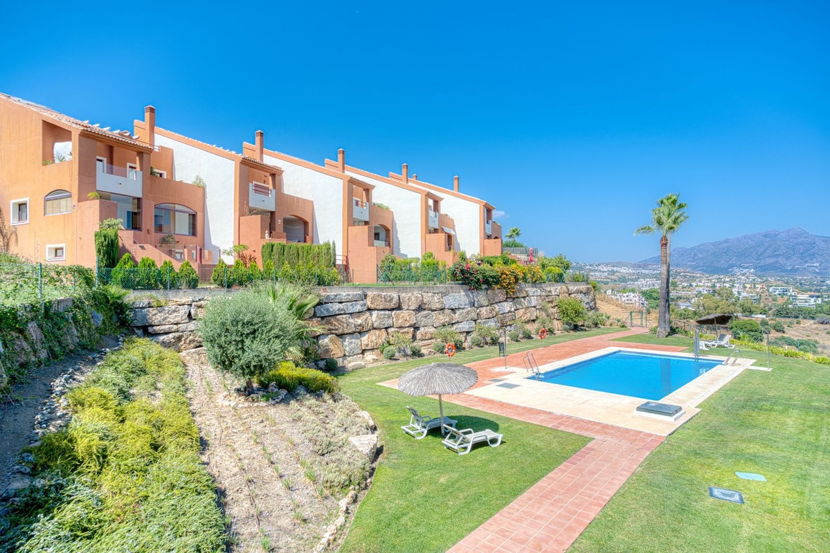 Genesteld in de prestigieuze gemeenschap Los Jaralillos in de gewilde wijk El Paraíso / Atalaya, biedt dit charmante herenhuis de perfecte combinatie van comfort, privacy en locatie.Ideaal gelegen op loopafstand van golfbanen, winkels, restaurants, cafés en gerenommeerde internationale scholen, biedt het een uitzonderlijke levensstijl aan de Costa del Sol.