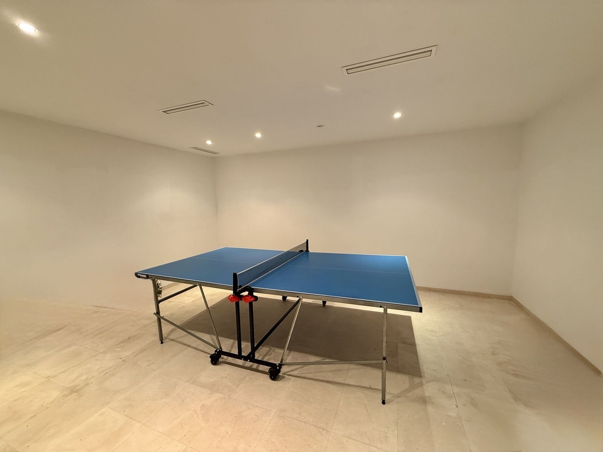 The lower level of the home features a vast garage with ample space for multiple vehicles, a games room, and another large open area perfectly suited to become a cinema room, gym, or private retreat. Throughout the villa, light floods in through large windows, highlighting the marble flooring and high-quality finishes. The property also benefits from double glazing, fitted wardrobes, fiber optic internet, and a thoughtful layout designed for modern living.