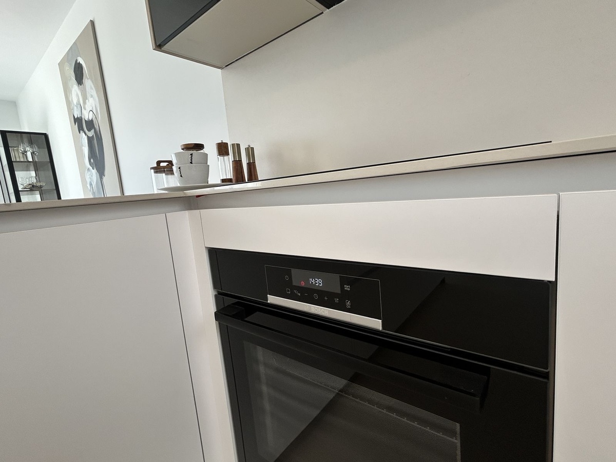 The home incorporates home automation with smoke and water leak detection, TV sockets in the living room, bedrooms, and terrace, and Jung mechanisms. The kitchen, equipped with wall and base units, a Silestone countertop, and paneled appliances with an A-grade energy efficiency rating, includes a stovetop, oven, microwave, hood, refrigerator, dishwasher, and washer-dryer. The bathrooms feature wall-hung toilets, extra-flat shower trays with screens, and, in the master bathroom, a double sink with integrated cabinetry.