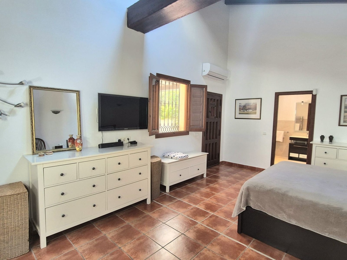 Als u de woning betreedt via de elektrische poort, komt u via een stenen weg bij de finca, met voldoende parkeergelegenheid, een carport/garage voor 2 auto's en aan de voorzijde van de woning is er een mooi overdekt terras om buiten te eten. U komt binnen in de open woonkamer/keuken, met hoge plafonds met houten balken. De keuken is volledig ingericht en in perfecte staat, en de woonkamer is voorzien van een houtkachel en pelletkachel. Vanuit hier is er ook toegang tot het achterste deel van de woning, waar zich een mooie binnenplaats bevindt en waar u zowel binnen als buiten kunt zitten. Vanuit de woonkamer is er een gang die leidt naar de tweede slaapkamer met tweepersoonsbed, een gastenbadkamer en een grote master suite met een grote ensuite badkamer. Dit is een enorme kamer met veel mogelijkheden om er zelfs twee slaapkamers van te maken. Er zijn dakramen, een raam en deur die toegang geven tot dezelfde binnenplaats, en mooie inbouwkasten. De master badkamer heeft een groot ligbad en een vrijstaande aparte douche.