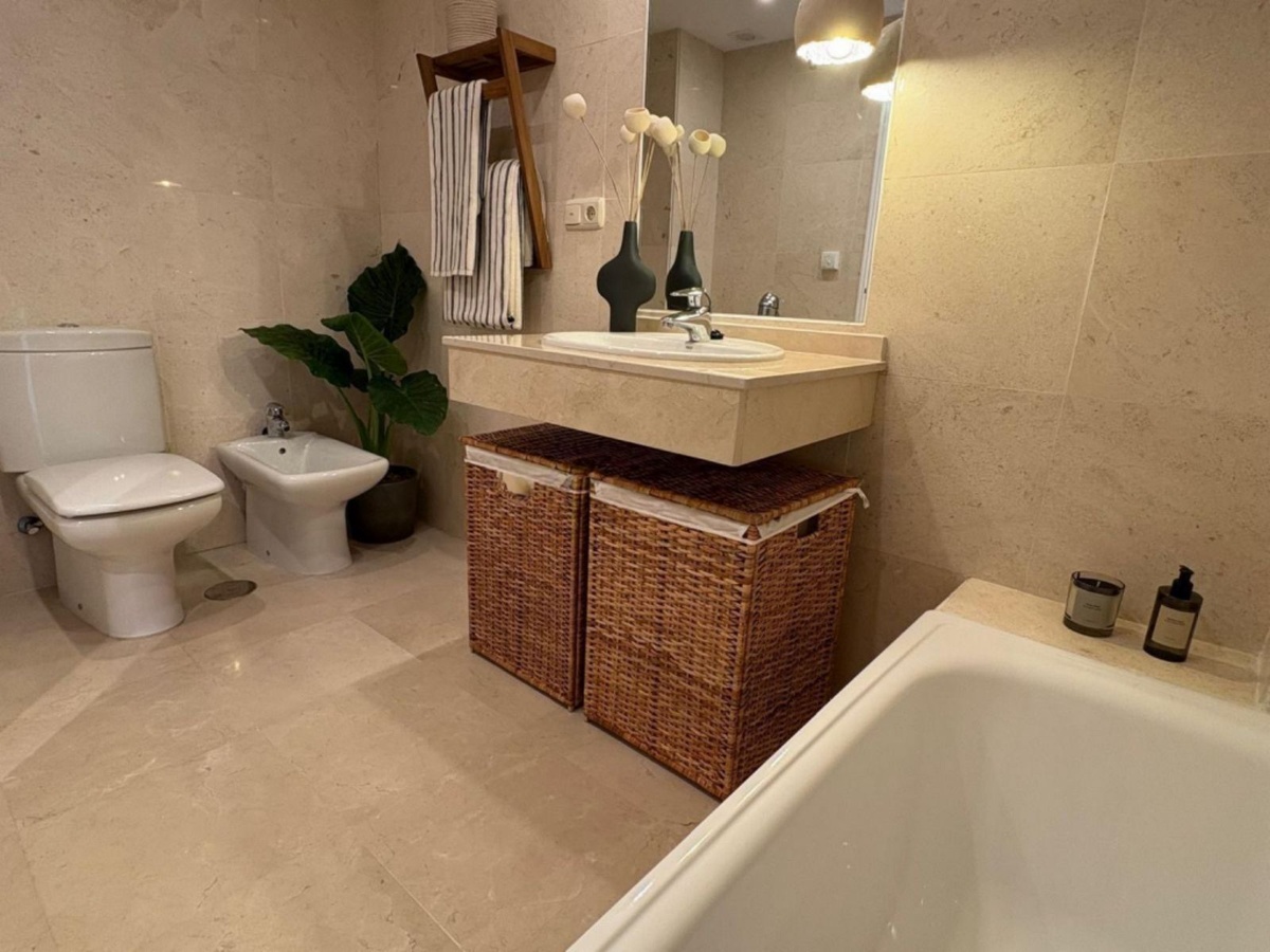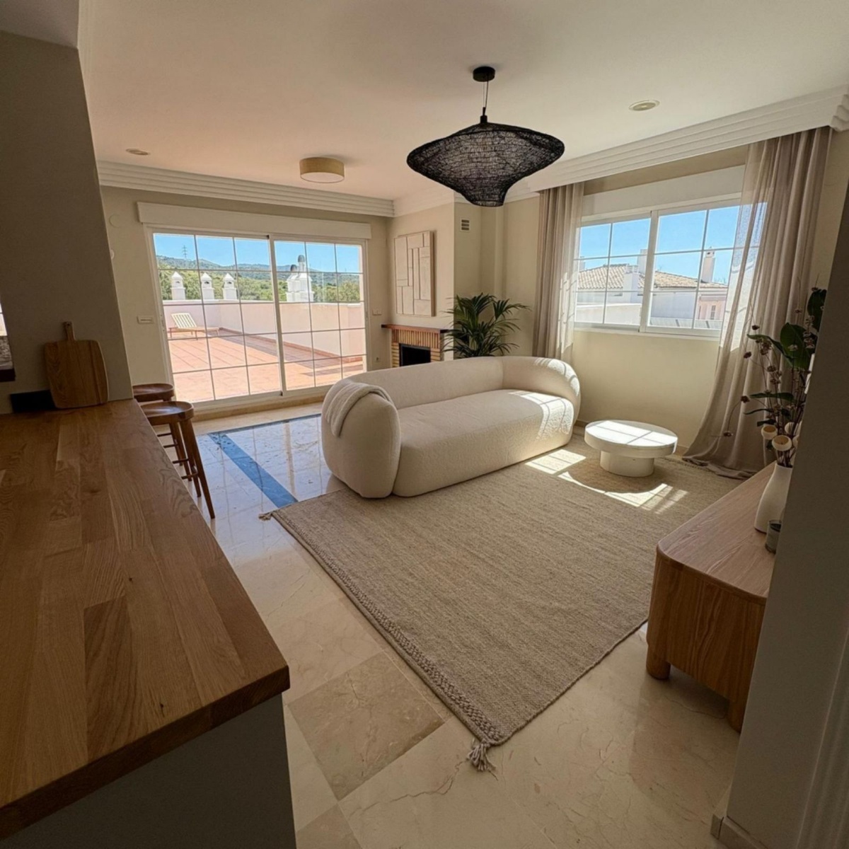 The penthouse features three spacious bedrooms, two bathrooms, and a large living room with a fireplace. The open-plan kitchen and dining area create a welcoming atmosphere, and the three terraces provide ample outdoor space to enjoy the Mediterranean climate. The property includes two parking spaces in the underground garage, ensuring convenience and security. The location is unbeatable, within walking distance of Marbella's best sandy beaches, as well as numerous restaurants, bars, and shops. The Río Real Golf Marbella course is just 500 meters away, and the nearest restaurant is also within easy walking distance.