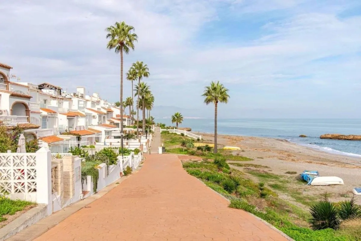Located in an exclusive and peaceful beachfront development, this charming corner townhouse offers a privileged setting right by the sea. The community is pleasant and well-maintained, featuring beautiful landscaped gardens and a large communal swimming pool facing the sea, perfect for enjoying the Costa del Sol’s wonderful climate.