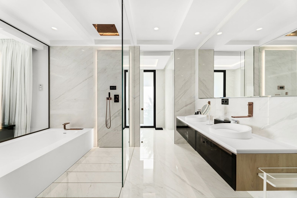 Deze ruimte op een lager niveau is op elegante wijze getransformeerd in een privéfitnessruimte, afgewerkt volgens dezelfde luxenormen als het hoofdverblijf.Het omvat een complete badkamer, natuurlijk licht en ventilatie, en een eigen ingang met vingerafdrukcontrole die directe toegang tot de garage mogelijk maakt, waarbij de gemeenschappelijke ruimtes volledig worden omzeild voor ultieme discretie.