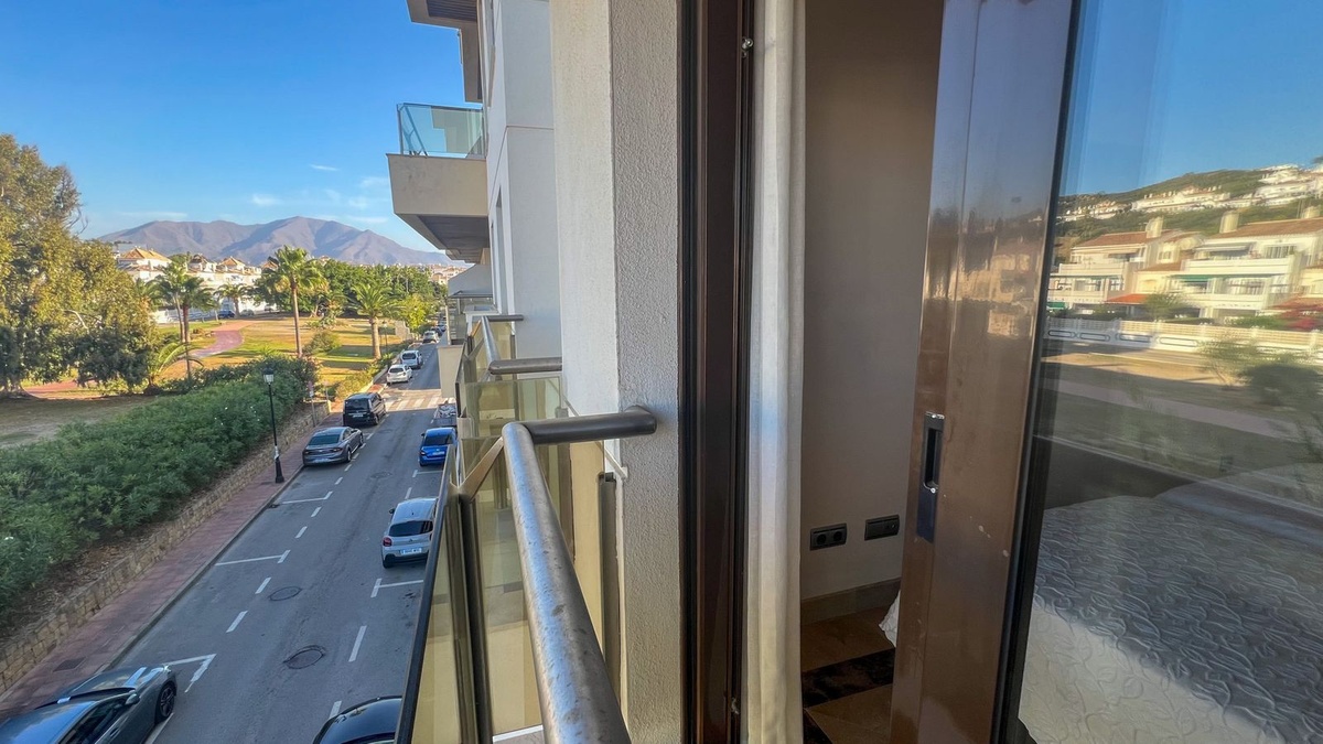 This modern apartment is sold fully furnished and designed for comfortable living. The property features a spacious living and dining area that opens onto a terrace with views of the park and the stunning Sierra Bermeja mountains. A fully fitted kitchen with a dedicated laundry area. Both bedrooms offer en-suite bathrooms and private balconies.