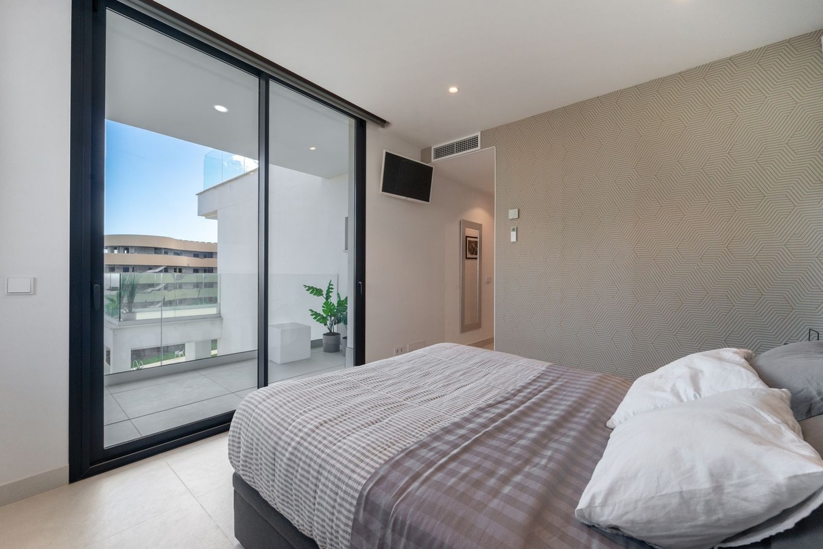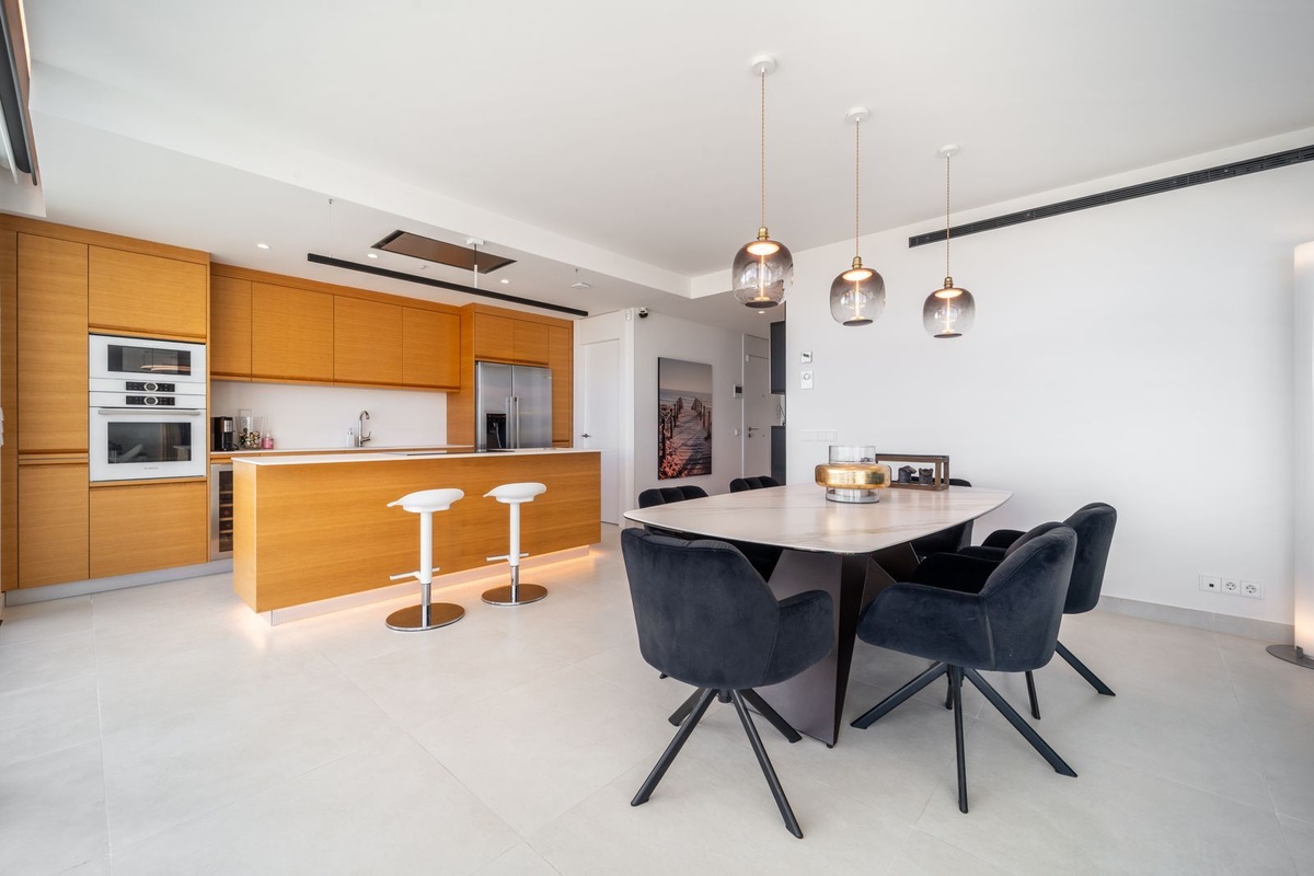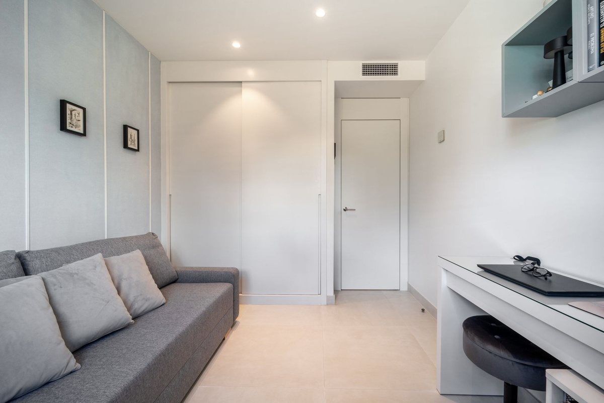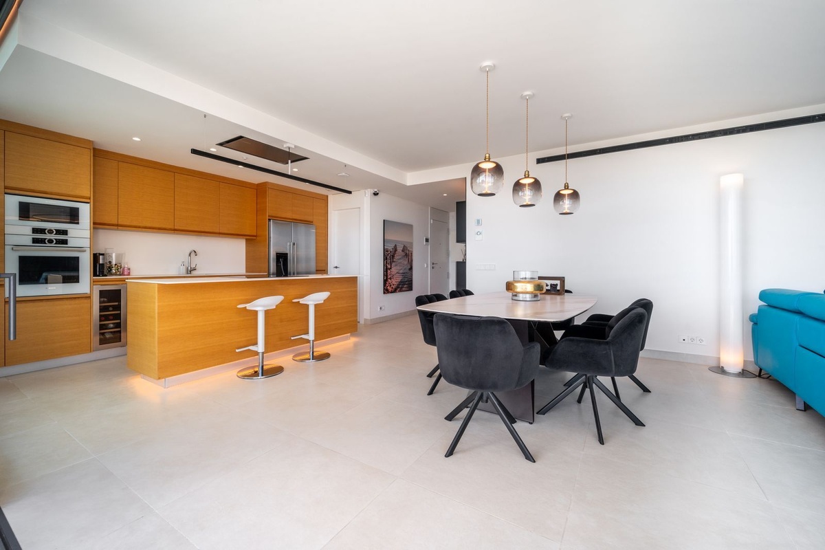 Luxury south facing apartment, in the exclusive urbanization of Higuerón West, with 3 bedrooms, 3 bathrooms of which 2 are ensuite, spacious living-dining room, open plan kitchen with large island, oversized cooktop, and high-end smart appliances, including an American fridge and wine-cooler, laundry area with washing machine/dryer, large terrace of 35m2 with beautiful sea and garden views. Master bedroom with walk-in closet, open plan ensuite bathroom with double shower and access to a terrace of 7m2. Air conditioning hot and cold, video intercom, domotic system, built-in wardrobes in all bedrooms, electric awnings on main terrace and motorized smart dual blinds (Screen & Blackout) in all bedrooms, High-quality LED lighting and smart ambient illumination, Smart alarm and video surveillance system controlled via mobile, Hydraulic underfloor heating throughout the apartment. Includes two parking spaces (with electric car charger) and one storage room.
