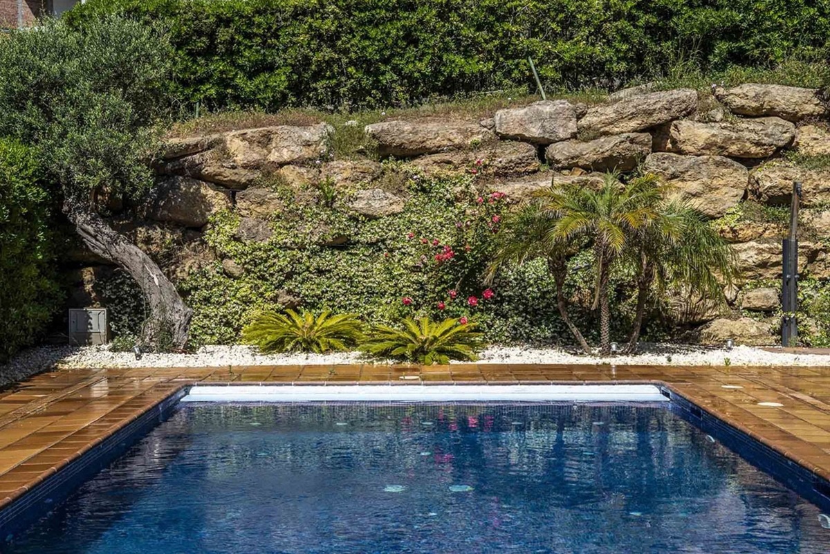 Outside, highlights include a large private saltwater pool, a low-maintenance garden, and spacious terraces (both covered and uncovered) with rustic ceramic floors, perfect for enjoying the climate and views at any time of day. The garage has direct access and capacity for several vehicles inside the property, with an automatic door for added convenience.