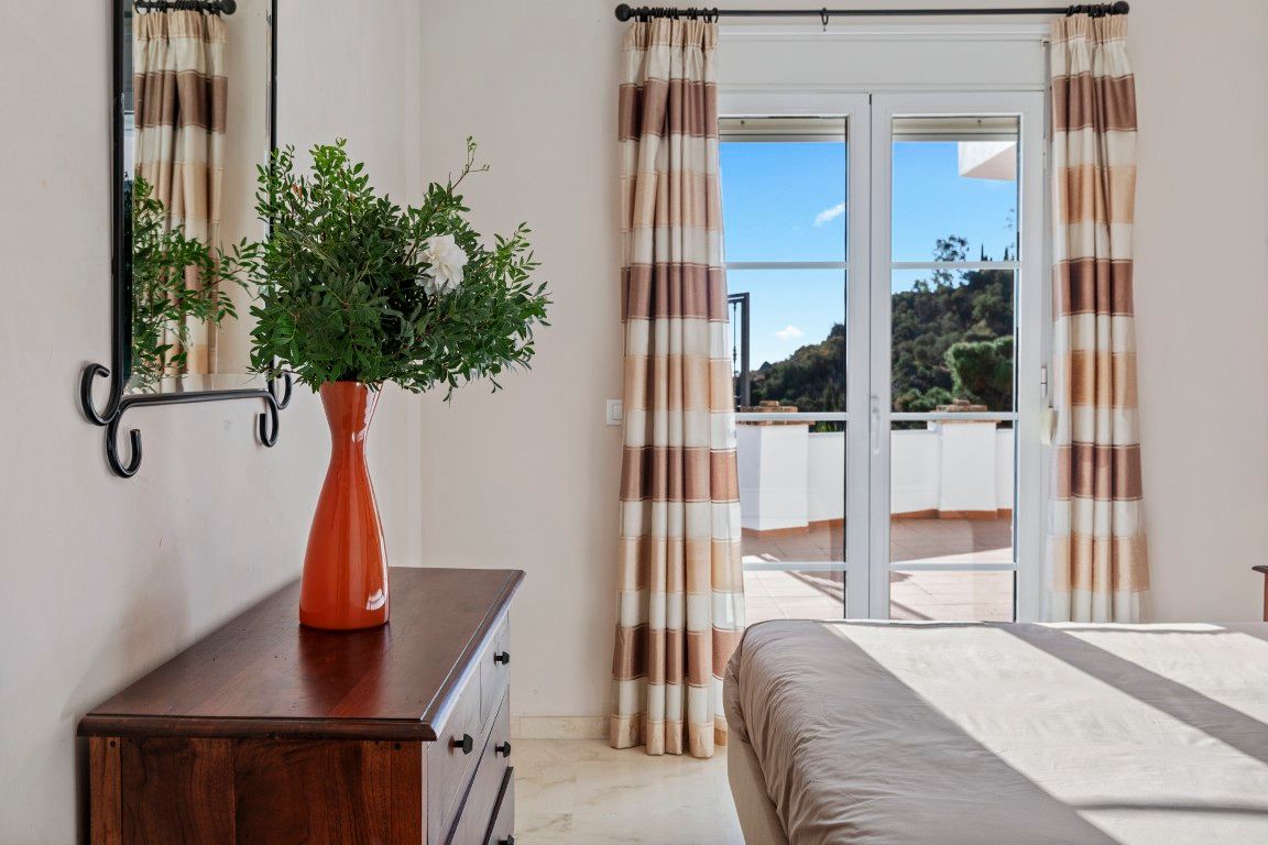 Nestled between the sea and the mountains in beautiful Benahavís, this bright and spacious corner apartment offers a rare balance of serenity, light and space, a true retreat on the Costa del Sol.Featuring three bedrooms and two bathrooms, the home stands out for its generous proportions and welcoming atmosphere. Every room feels airy and full of natural light, from the elegant open living area perfect for relaxing or entertaining, to the comfortable bedrooms designed for restful nights and easy mornings.The heart of the apartment is its impressive 60 m2 private terrace, partially covered, allowing you to enjoy the outdoors all year round. From here, you can take in lovely views of the lush gardens, green surroundings and the sea on the horizon, creating a tranquil and inspiring backdrop.The independent, fully fitted kitchen with an adjoining laundry room blends style and practicality, while central air conditioning ensures comfort throughout every season.The property includes a private garage space and storage room, and belongs to a small, meticulously maintained gated community offering beautiful landscaped gardens, a large swimming pool and a paddle court, the perfect setting for a relaxed and exclusive lifestyle.Ideally located, it is just five minutes from San Pedro Alcántara, ten minutes from Puerto Banús and close to Monte Halcones shopping centre, with easy access to supermarkets, restaurants and all the amenities of the Costa del Sol.More than just a home, this apartment is a place where you can slow down, enjoy space and light, and embrace the Mediterranean way of life.The abbreviated information document is available to you. Expenses: Taxes (ITP or VAT+AJD) + Notarial and registration expenses.ALA