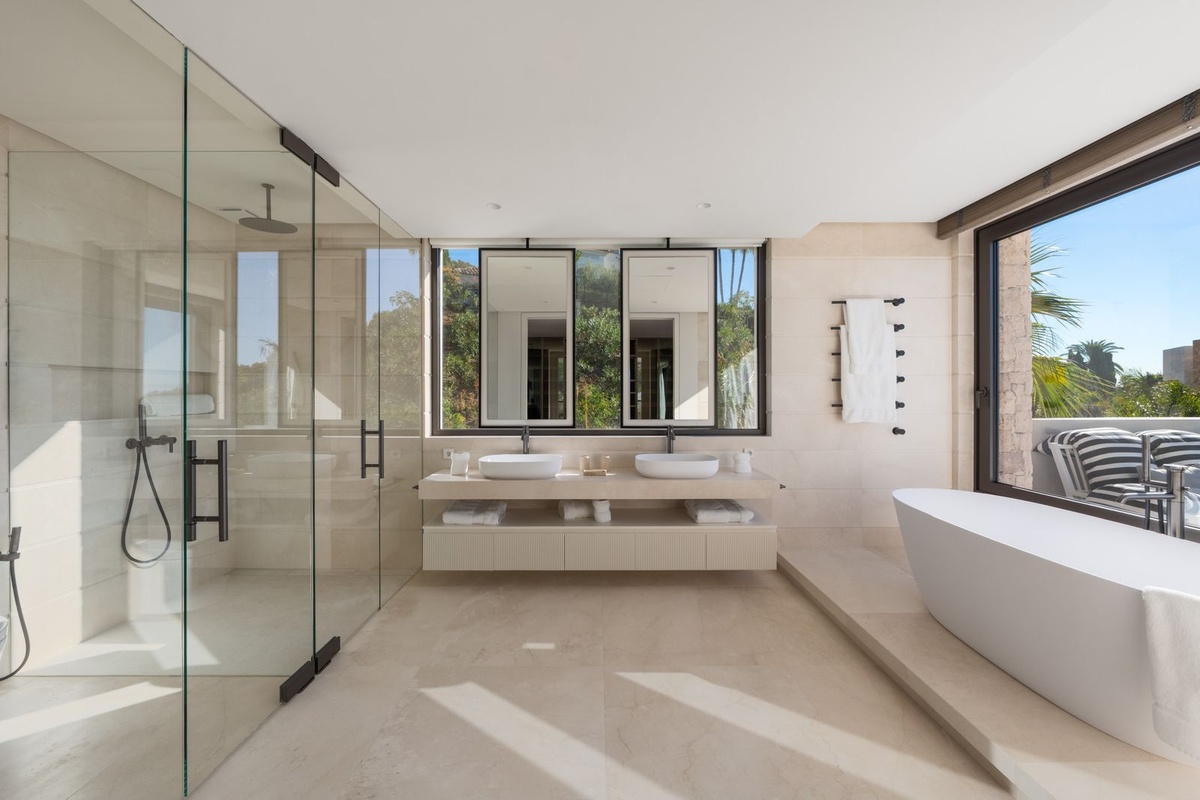 Elk van de slaapkamers is zorgvuldig ontworpen als een privétoevluchtsoord, met de beste materialen en inrichting om comfort, luxe en rust op te roepen.De badkamers zetten dit thema voort met een verfijnd ontwerp, dubbele wastafels, ruime inloopdouches en vrijstaande badkuipen die een spa-achtige ervaring bieden.