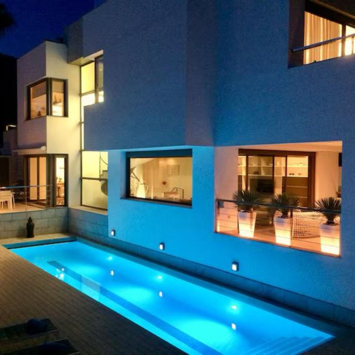 The stunning saltwater pool, illuminated at night, invites you to relax under the Mediterranean sky. Pool heating is available on request, ensuring a pleasant swim all year round.
