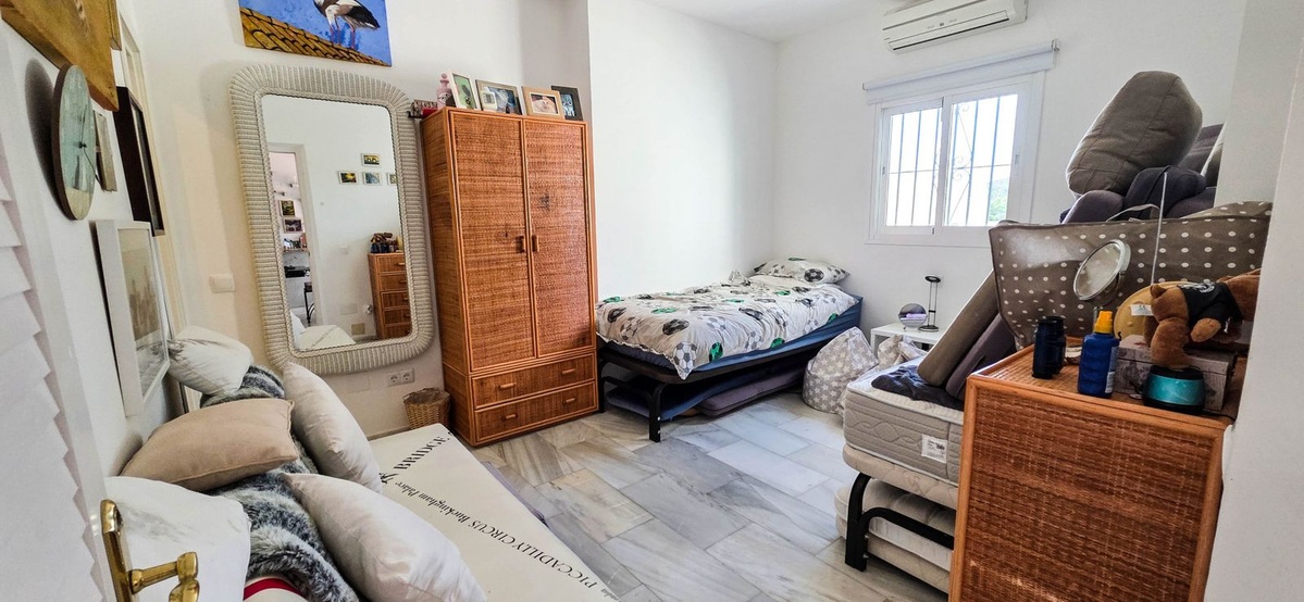 Set on the front line of La Duquesa’s golf course, this south-facing semi-detached bungalow combines space, sustainability, and location in one irresistible package. Offering five bedrooms, all with ensuite bathrooms, this is a home designed for comfortable living and easy entertaining under the Andalusian sun.